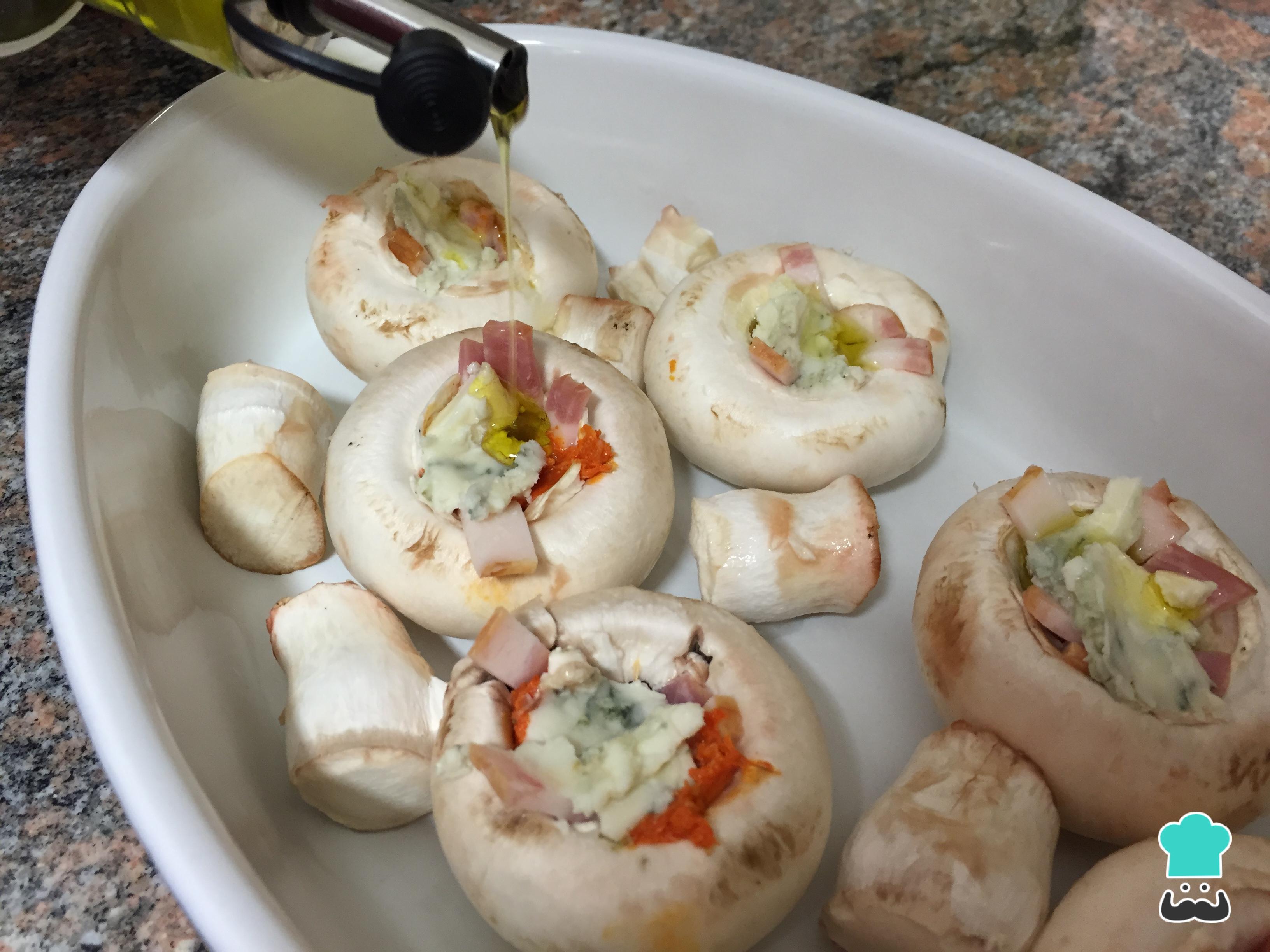 Cómo hacer Champiñones rellenos de bacon y queso azul:
