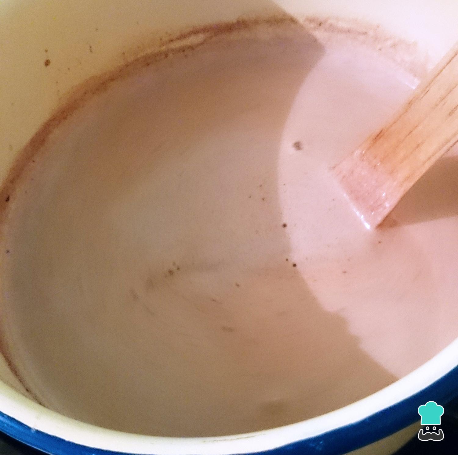 Incorpora en la olla la mezcla que preparaste previamente y mueve constantemente para evitar que se nos pegue nuestro champurrado mexicano.