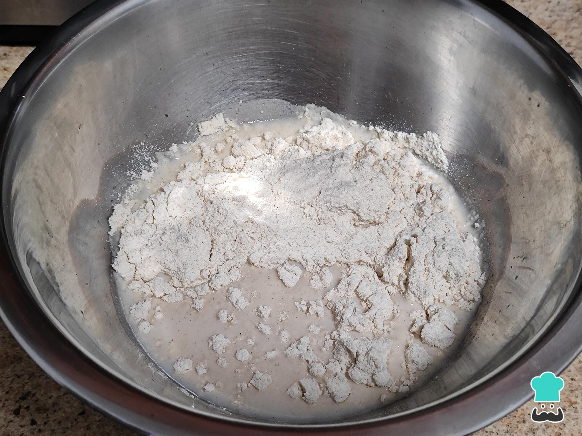 Mientras se calienta el agua con la canela, en un recipiente mezcla la maseca con una taza de leche hasta que obtengas una mezcla líquida sin grumos y reserva.