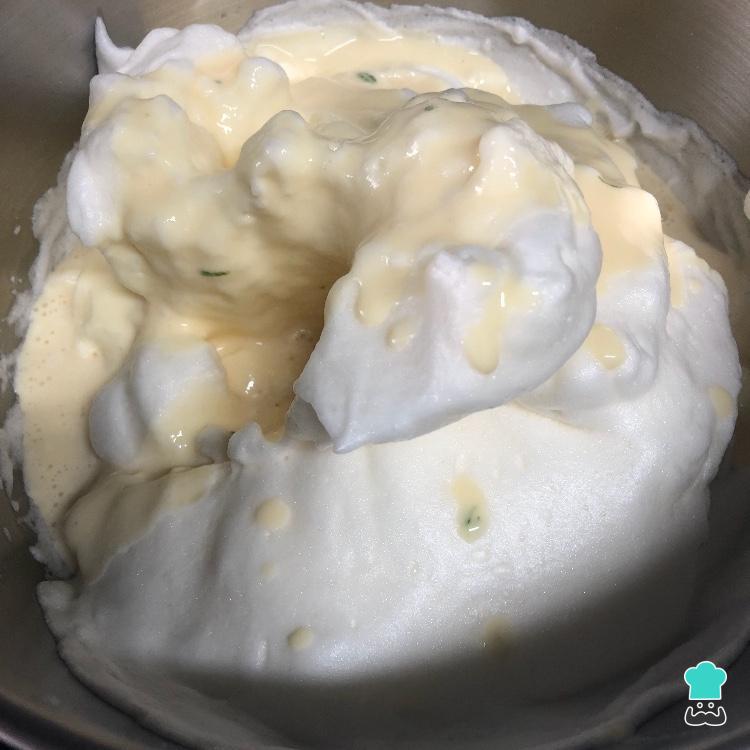 Agrega la mezcla de la tarta de ricota fácil a las claras de huevo a punto de nieve.