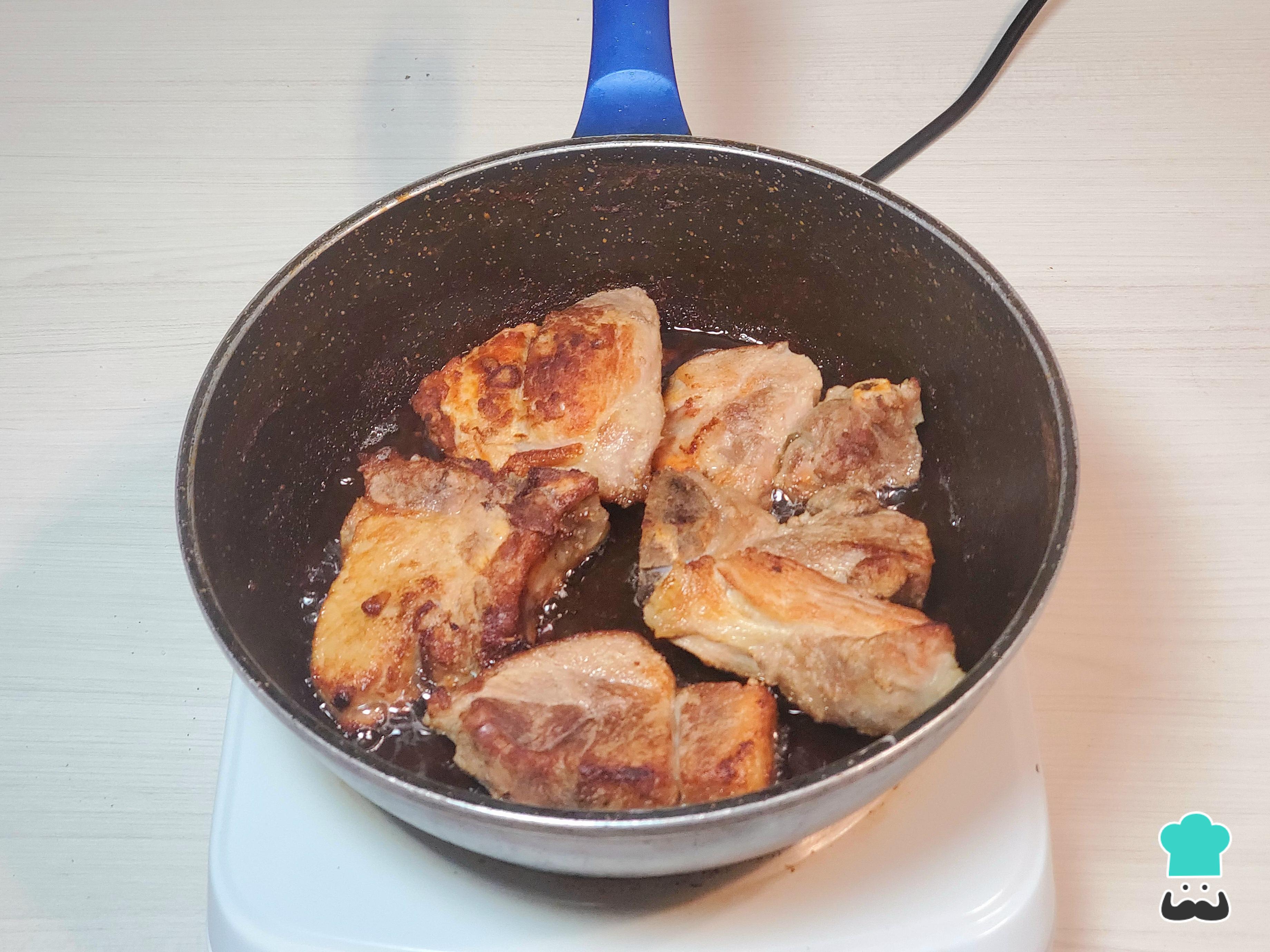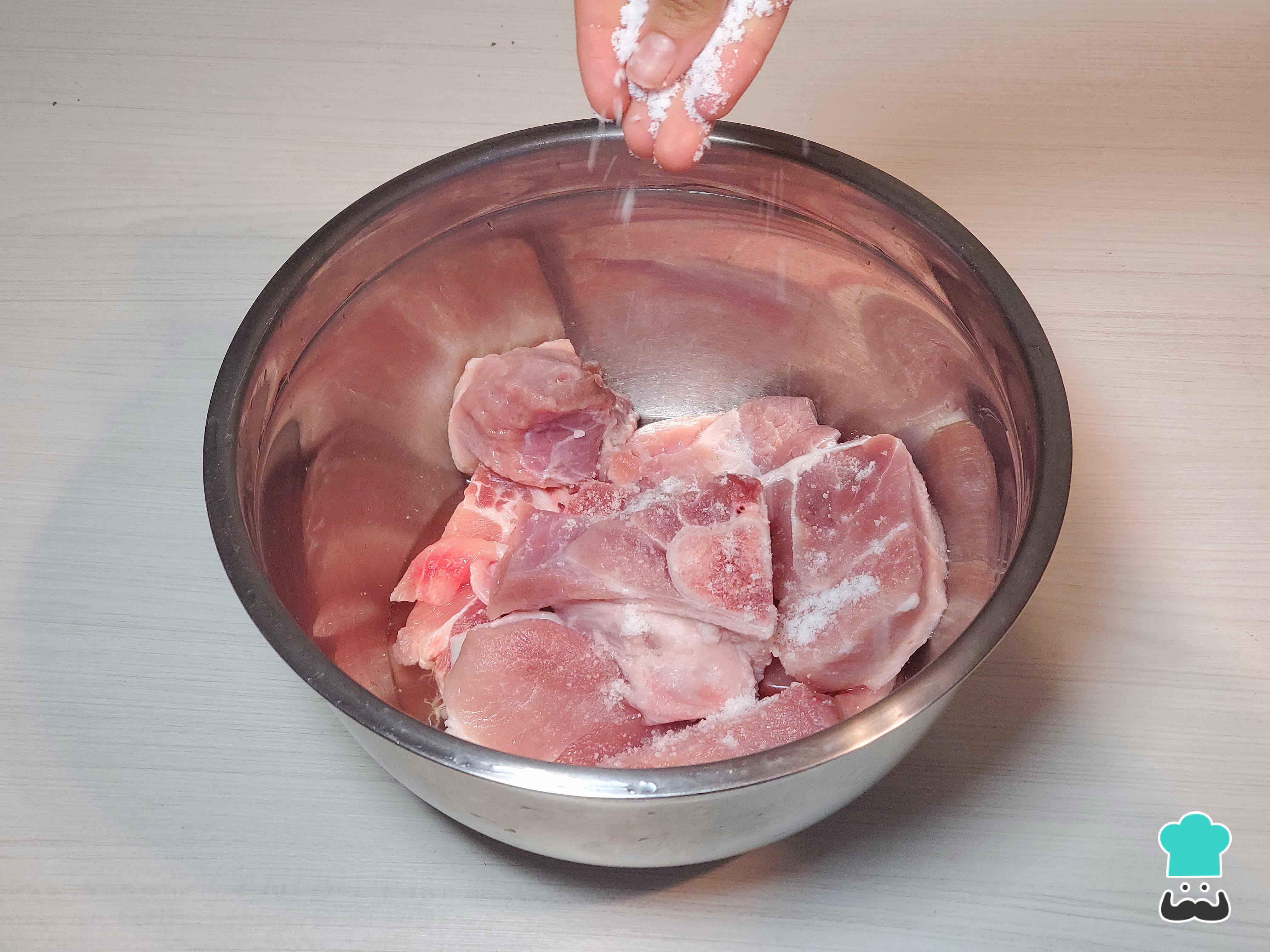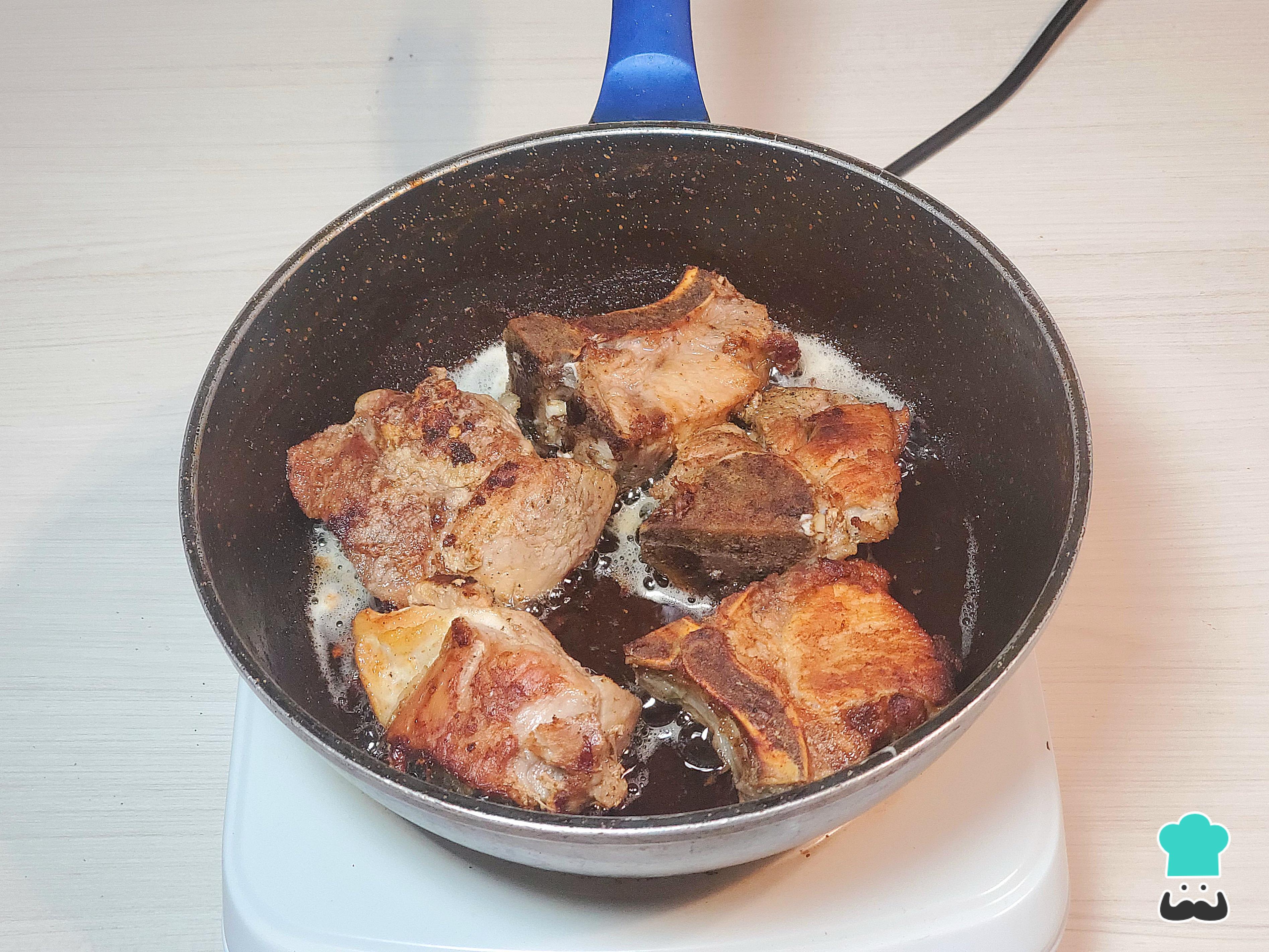 Si el cerdo tiene una parte grasosa, notarás que en el fondo de la olla habrá aceite, lo que ayudará a freír los trozos de carne. Sin embargo, si no hay suficiente aceite debido a la magreza de las piezas, añade manteca de cerdo o, en su defecto, aceite vegetal para freír.