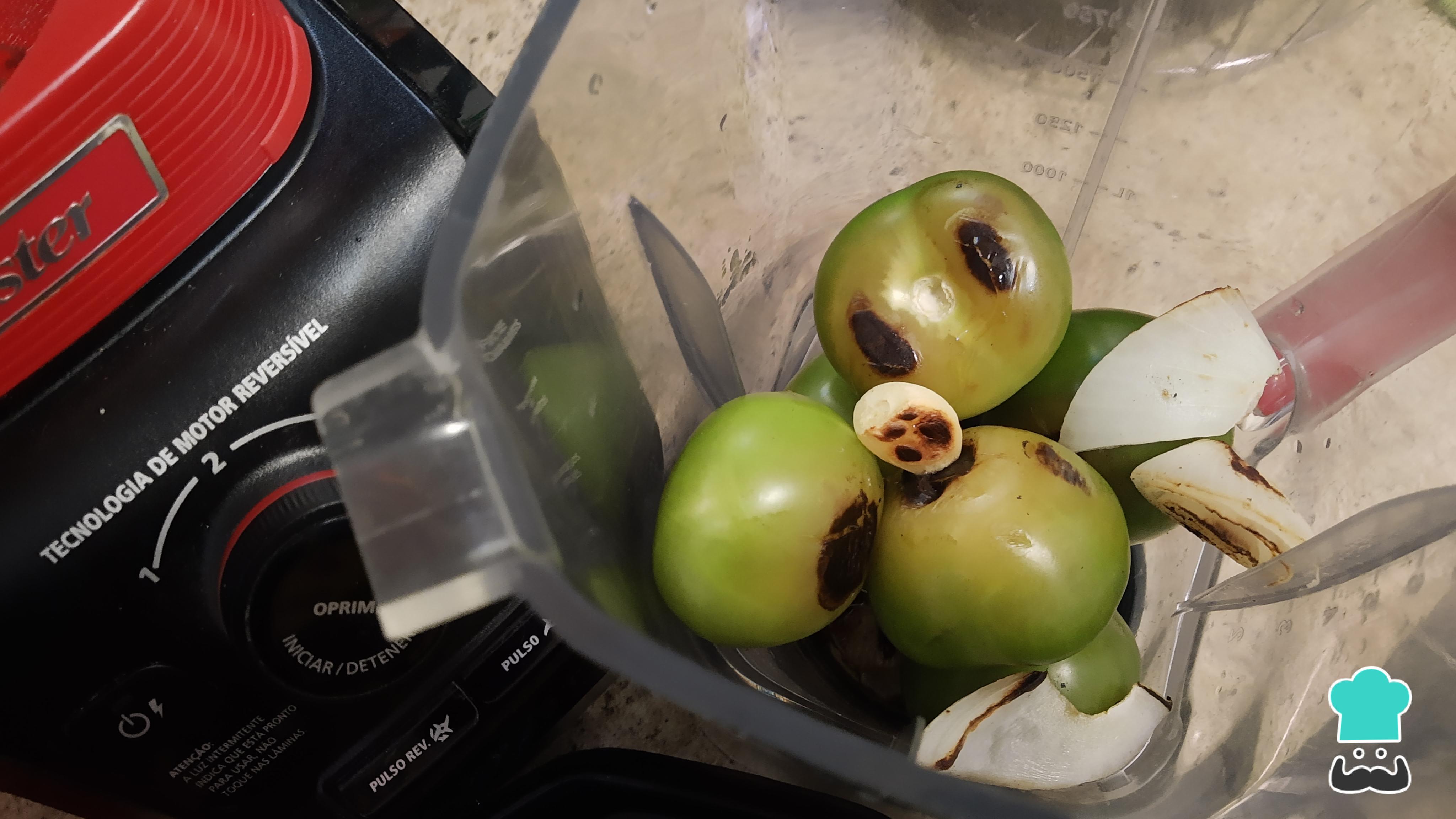 Cuando estén bien tatemados, retira del sartén o comal y lleva a licuar con una pizca de sal, pimienta y un chorrito de agua tibia. También puedes usar caldo de pollo o fondo de verduras.