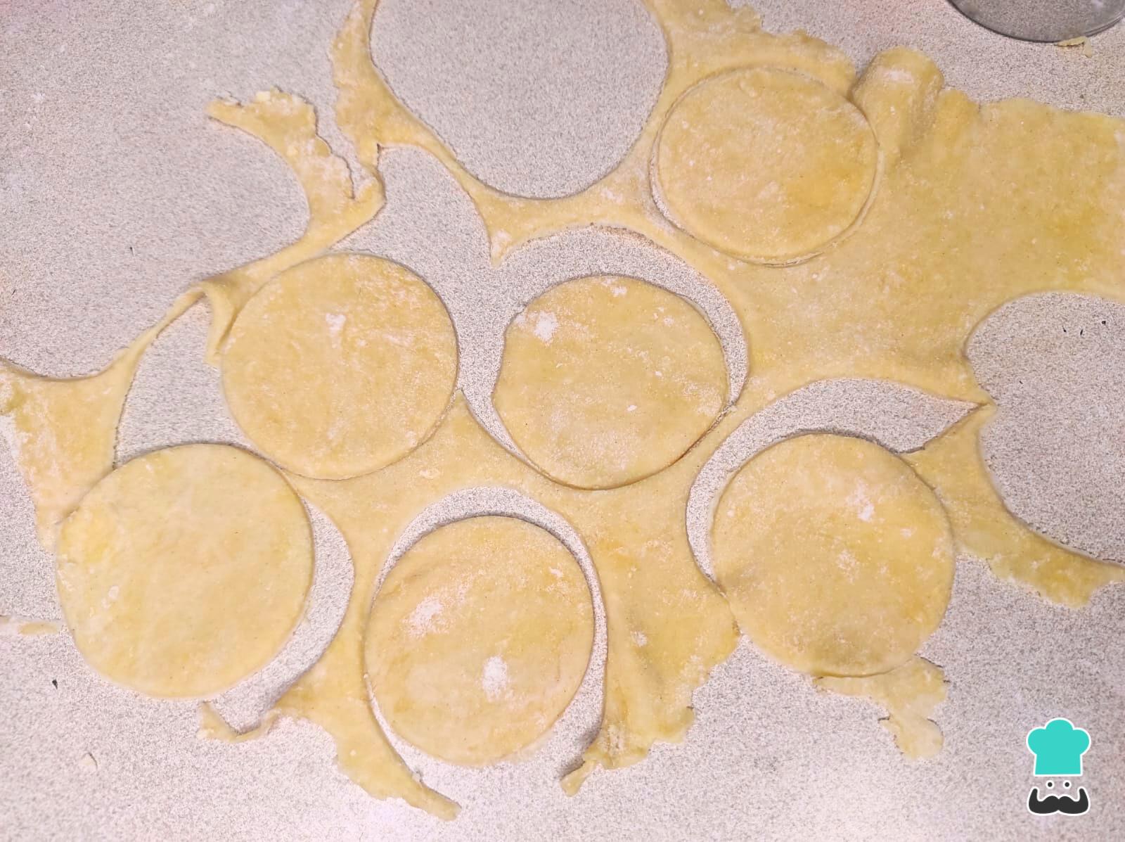 Uslerea la masa delgada, aproximadamente 1 a 2 milímetros y corta los alfajores. Antes de incorporar en el horno, clava con un tenedor para que no se inflen.