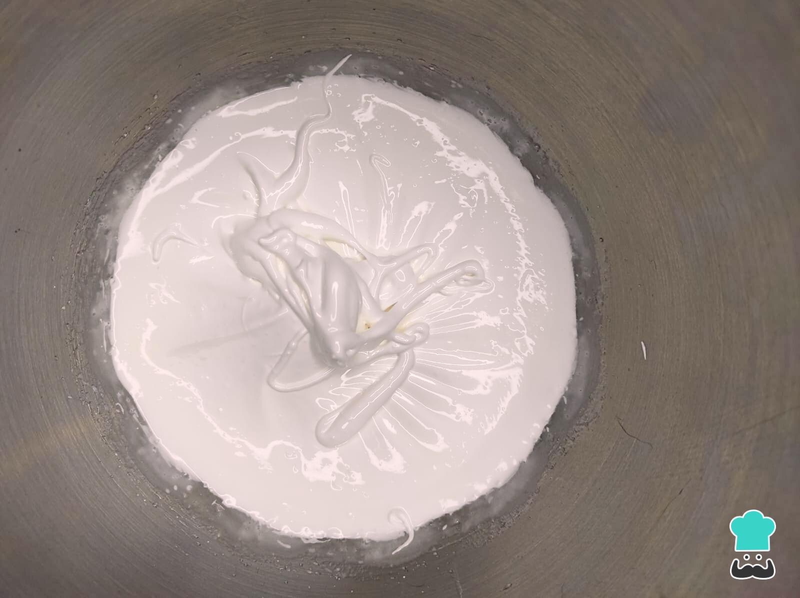 Retira del baño María y empieza a batir con batidora a máxima velocidad hasta que el merengue este frío. Unos 10 a 15 minutos, reserva.