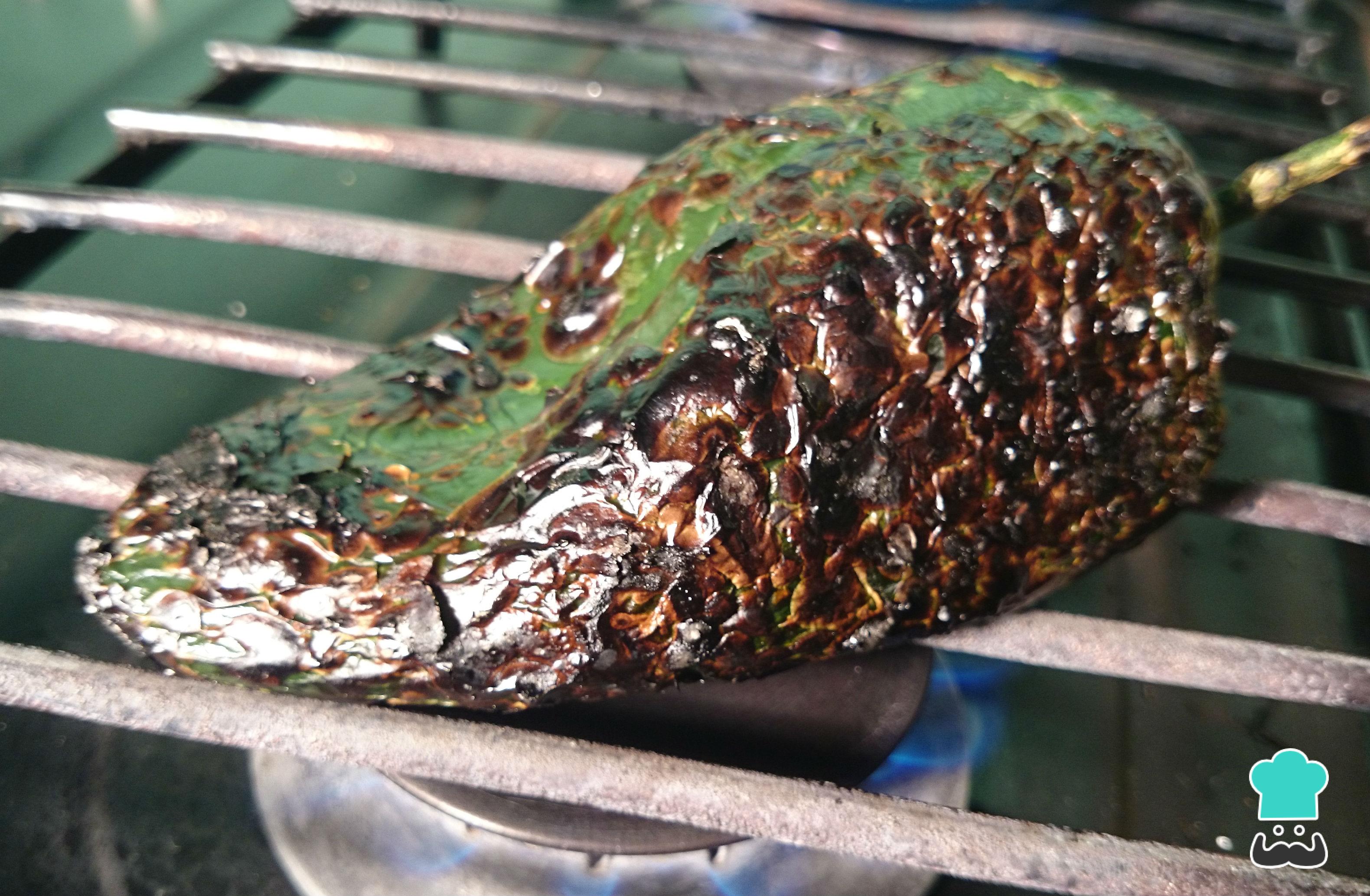 Para empezar con la receta de chiles en nogada estilo Puebla, primero debes asar los chiles poblanos directo al fuego. Volter hasta que se infle la piel uniformemente.