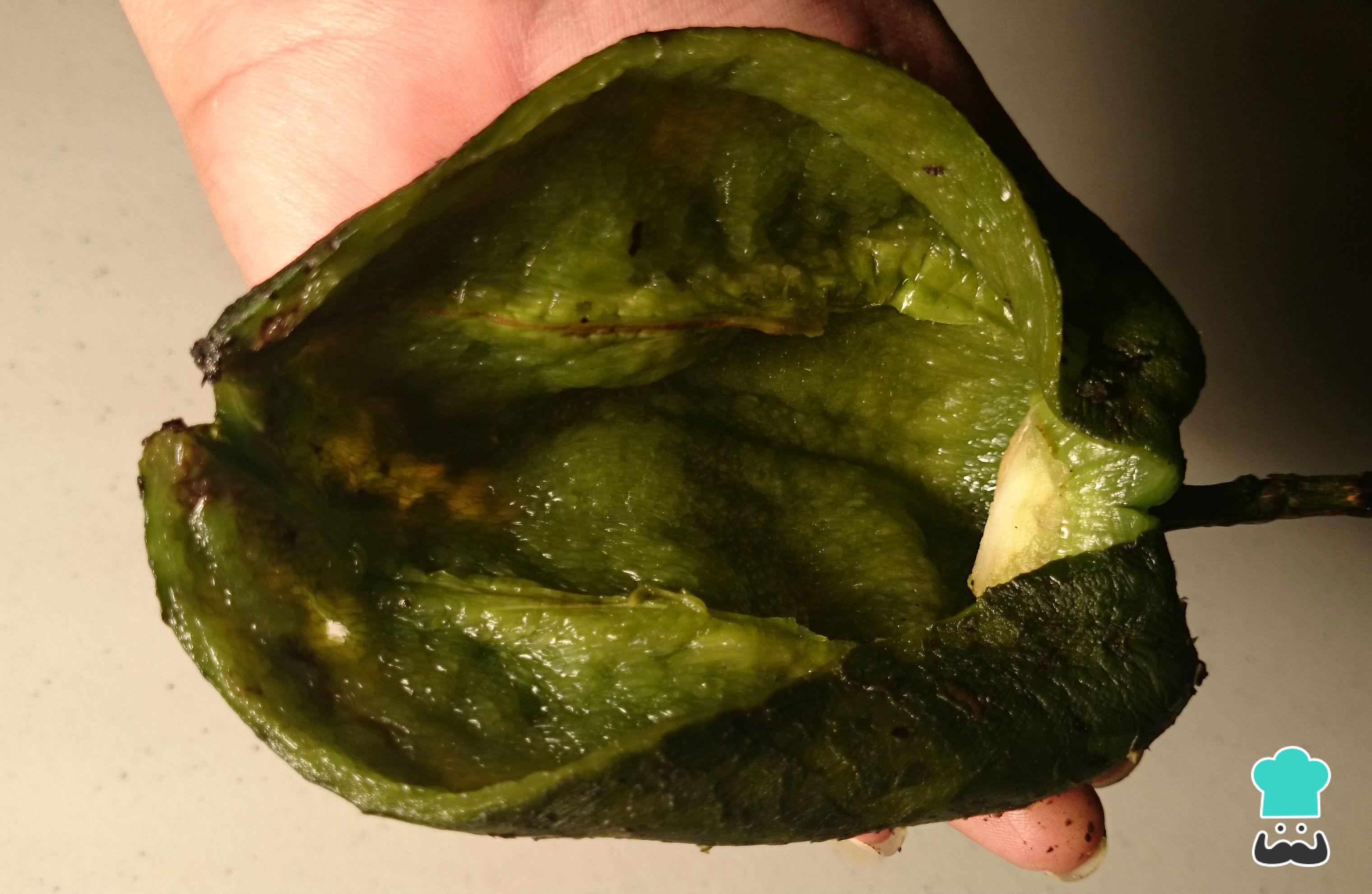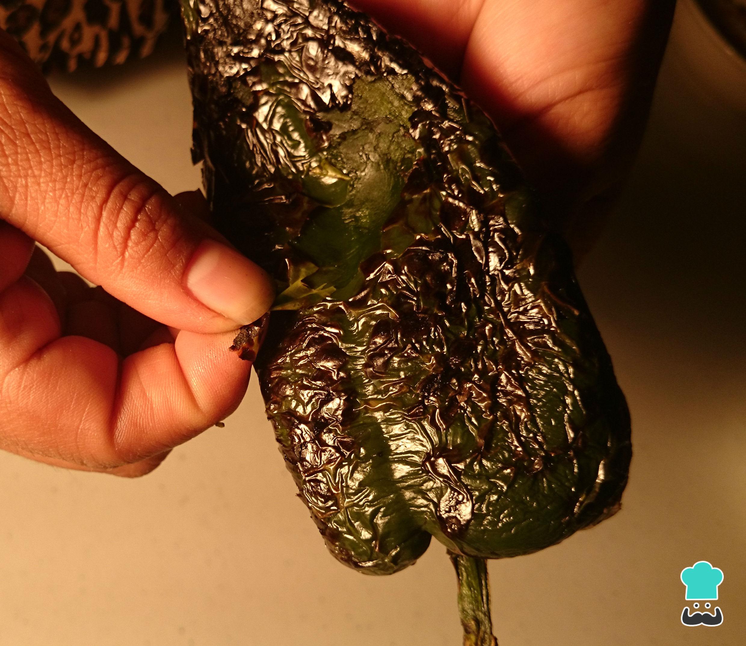 Retira los chiles de la bolsa y empieza a pelarlos. En este punto la piel se desprenderá fácilmente.