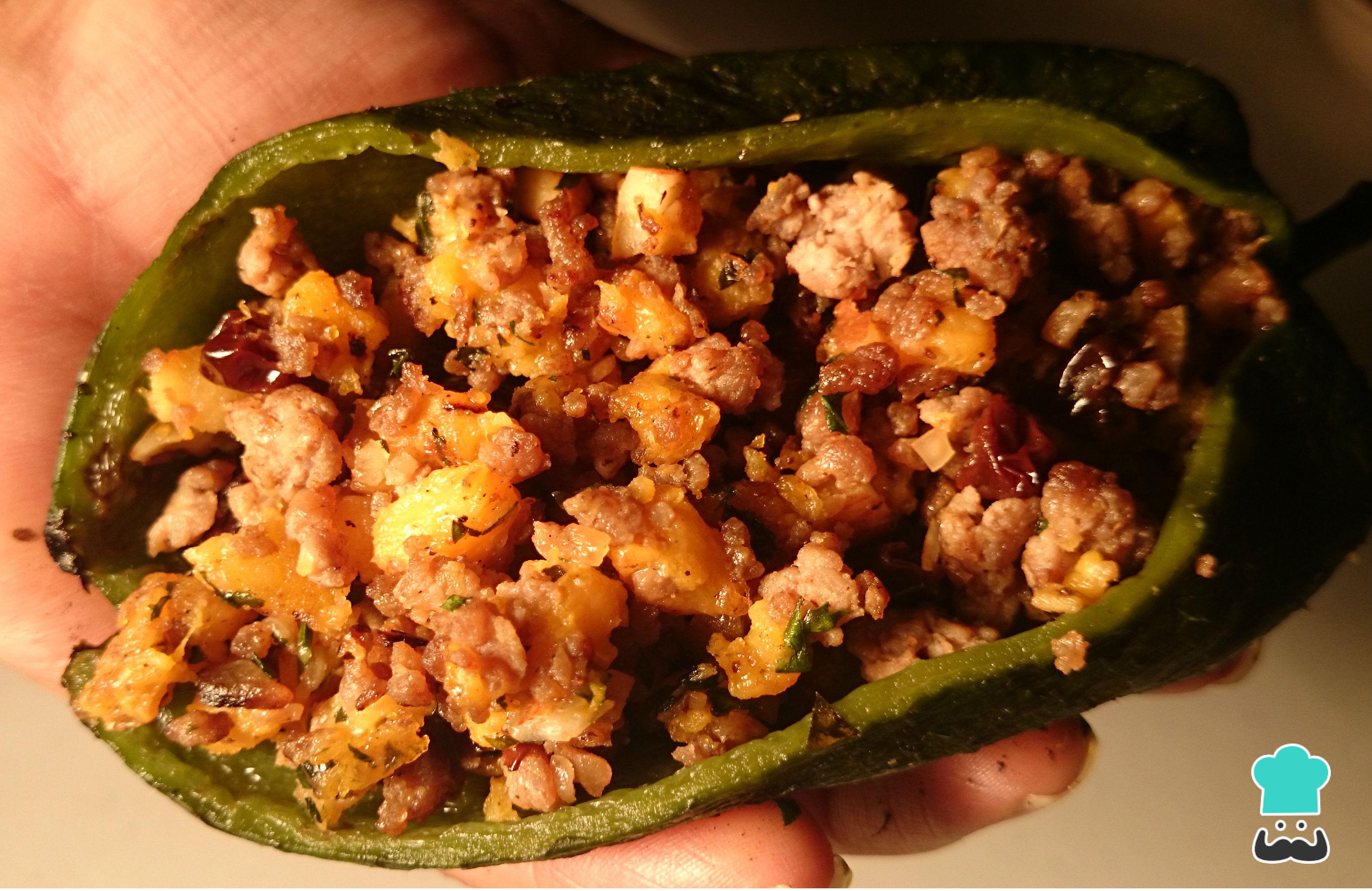 Ahora rellena cada uno de los chiles con el picadillo de carne estilo Puebla y reserva.