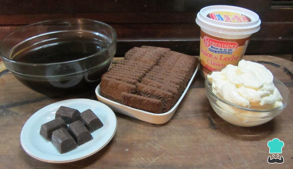 Por otro lado, remojamos las galletas en café. Éstas serán parte de la base de la torta argentina de chocolate. Trata que queden húmedas pero sin llegar a romperse.
