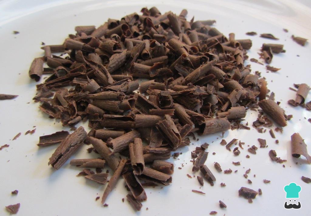 Por otro lago, hacemos unos rulos de con el chocolate semiamargo para decorar nuestra chocotorta argentina. Esto lo puedes conseguir rallando el chocolate por el lado más gruesos del rallador.