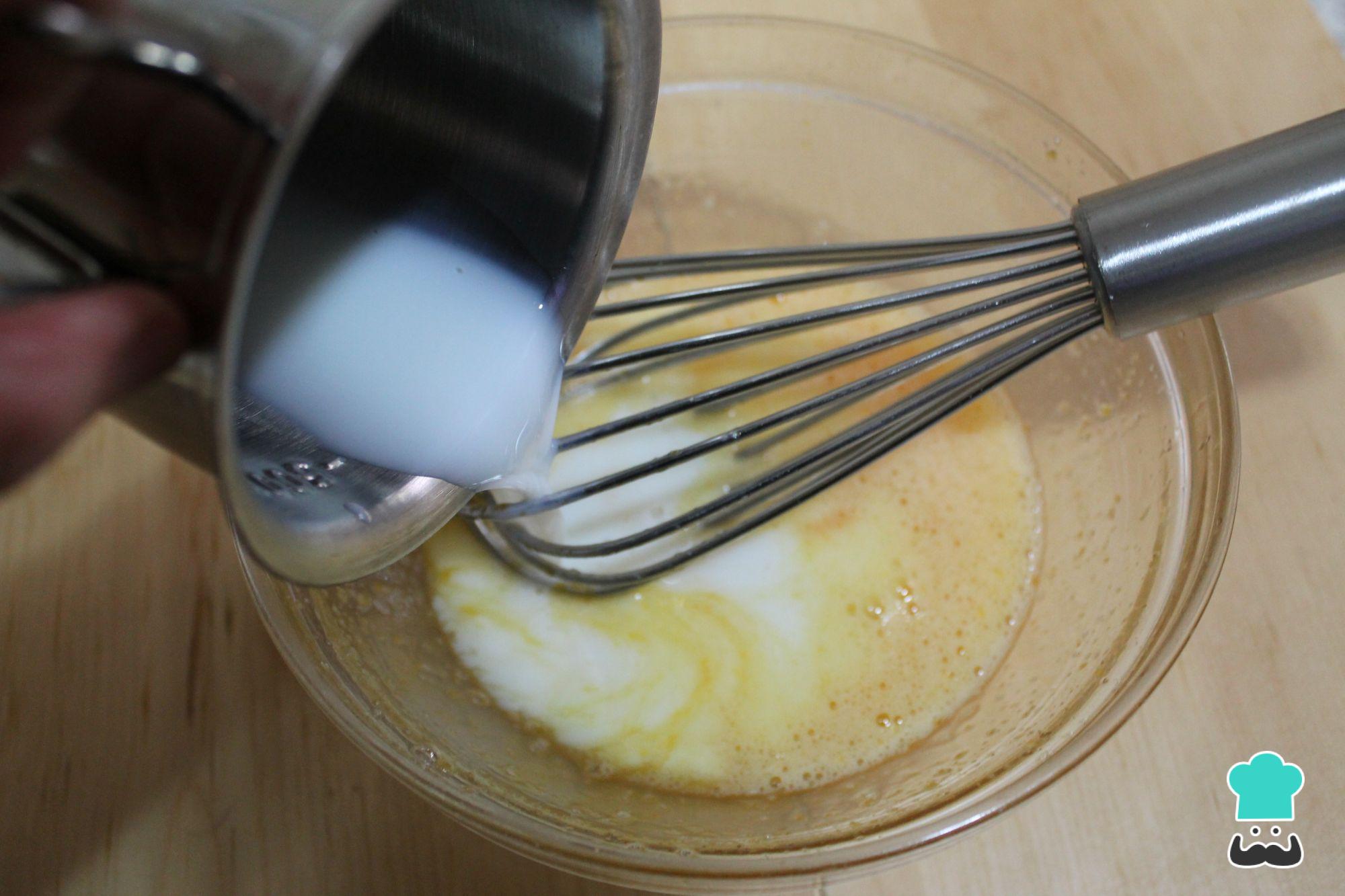 Por último, incorpora la harina y mezcla bien, deshaciendo los posibles grumos que se formen hasta conseguir una textura espesa pero fluida.