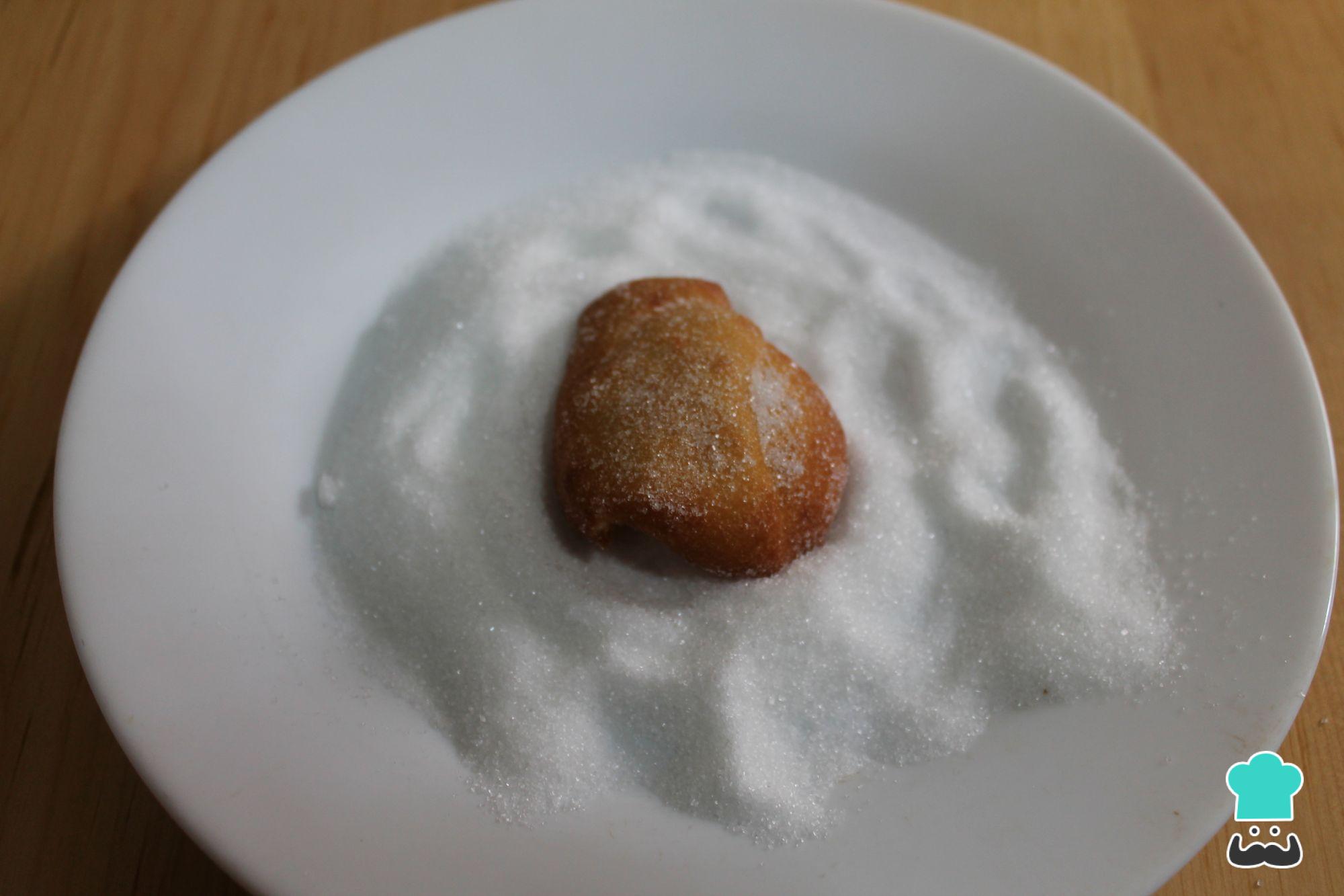 Pasa cada chula aún caliente por azúcar o simplemente espolvorea por encima si no quieres que adquiera mucho azúcar.