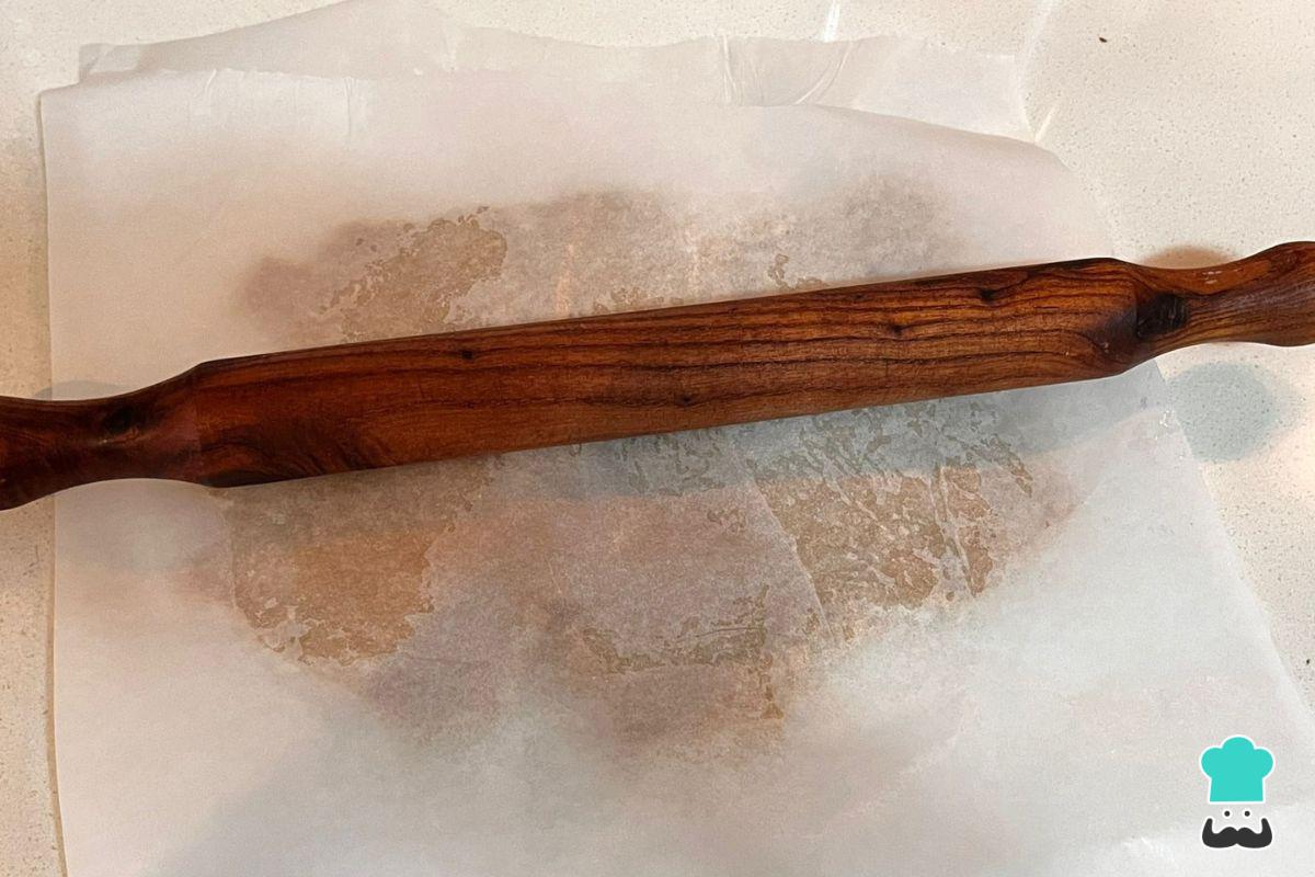 Corta dos papel mantequilla y coloca la masa en medio, estira con un uslero.