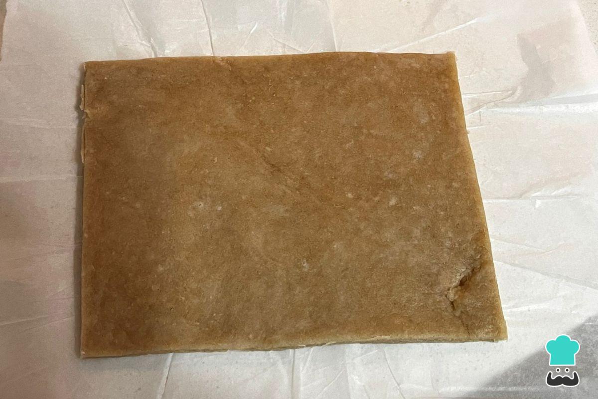 Cuando tengas la masa ya estirada con el grosor ideal 3 mm aproximadamente, corta los bordes para que queden parejos.
