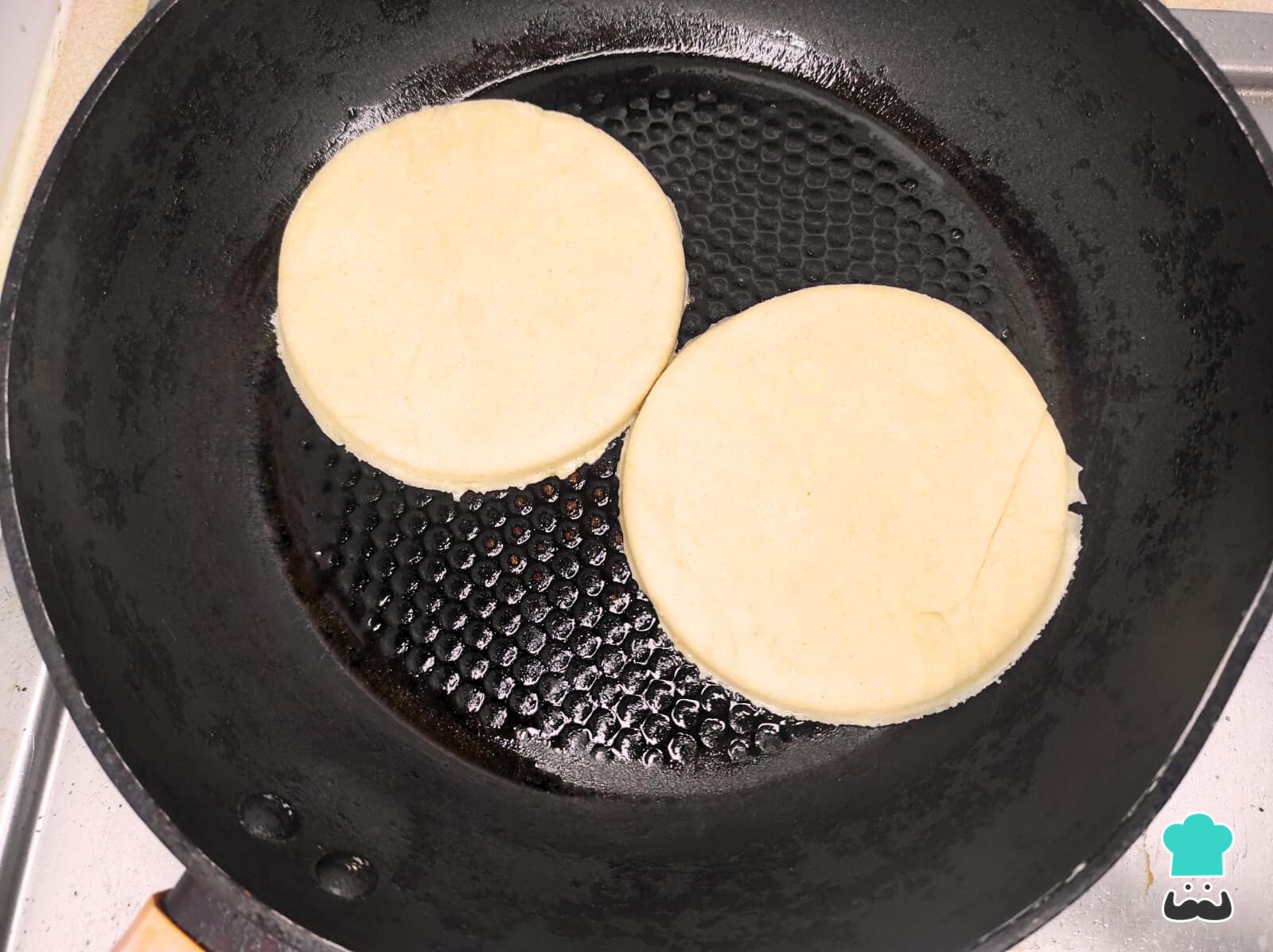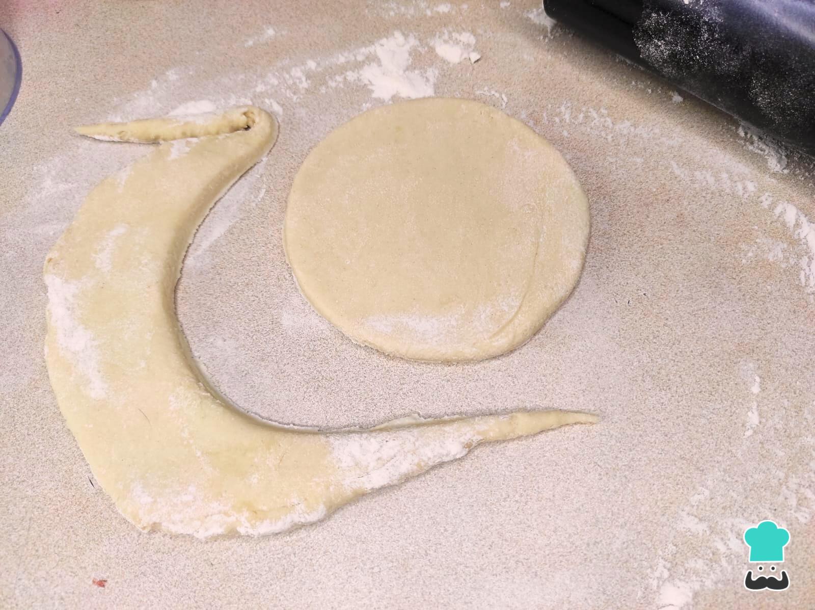 Estira con un uslero la masa en un mesón enharinado formando una masa de aproximadamente de 1 centímetro de grosor y corta círculos de 10-15 centímetros o a tu gusto. Deja leudar los pancitos por unos 20 minutos en un lugar tibio.