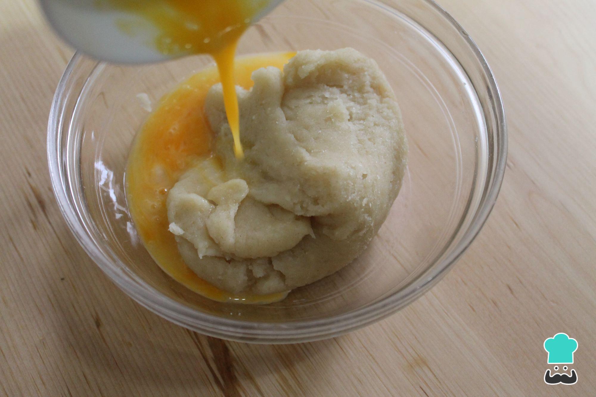 Retira del fuego la bola de masa y colócala en un bol más pequeño. A continuación, bate ligeramente el huevo y añade a la masa. Ve mezclando muy bien para que quede bien integrado el huevo y quede una masa lisa y homogénea.