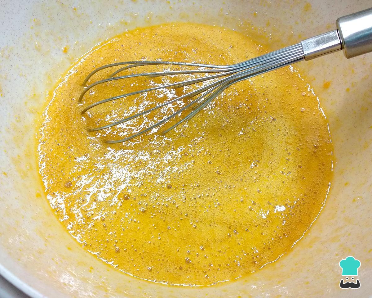 Batimos los huevos con el azúcar para empezar a preparar la tarta francesa de frutos rojos.