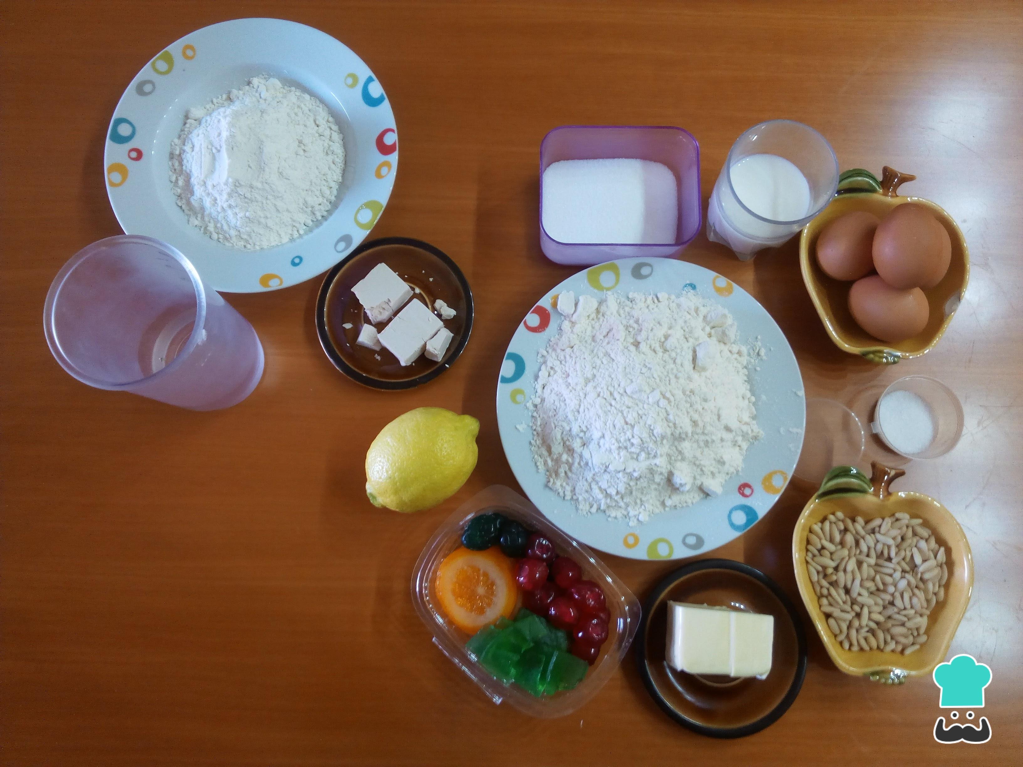 Lo primero que tenemos que hacer para preparar esta receta de coca catalana es reunir todos los ingredientes necesarios.