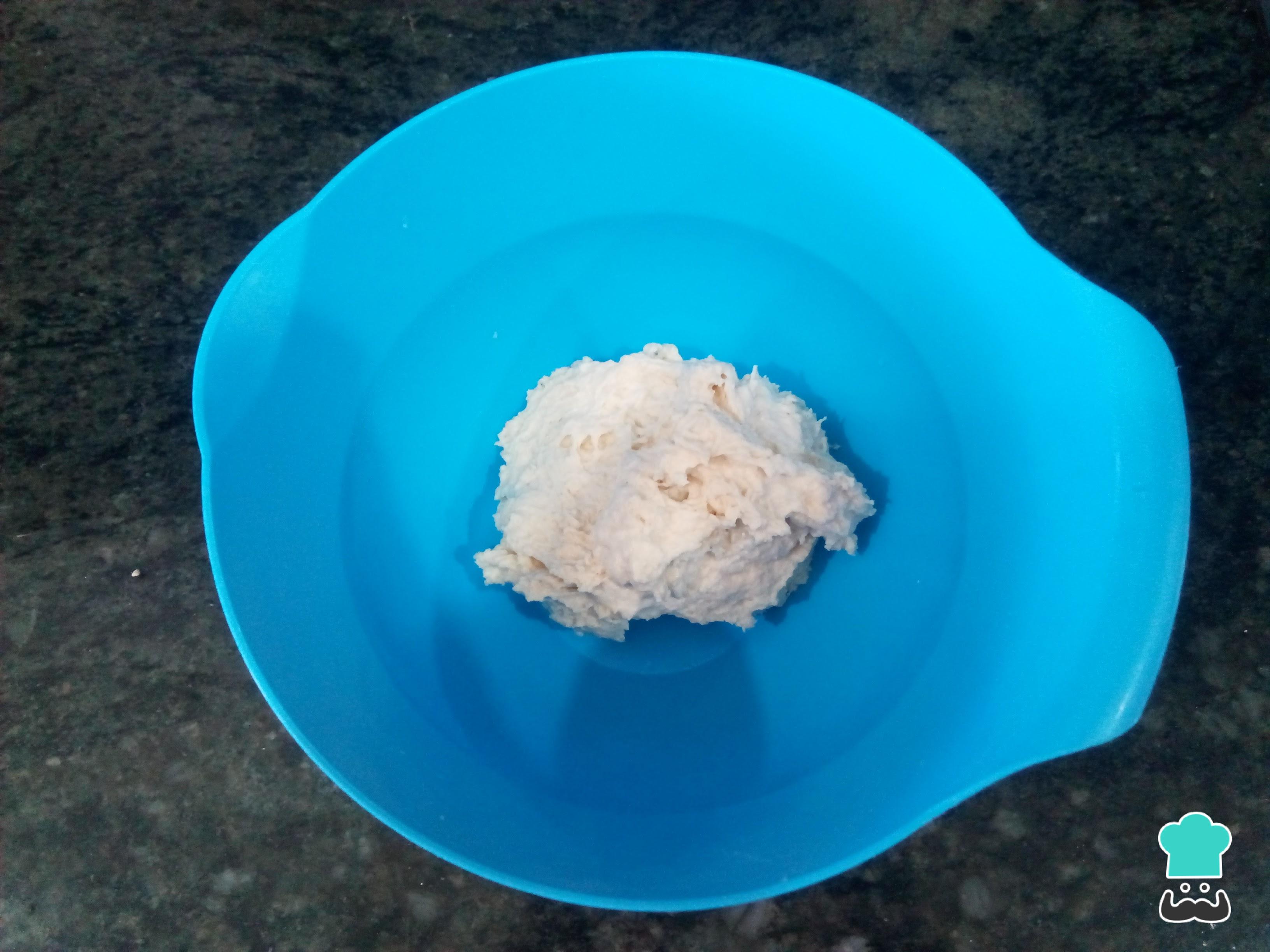 Deja reposar la masa madre dentro del bol que vayas a usar para hacer la masa fácil durante 1 hora tapada con un trapo seco para que doble su volumen.