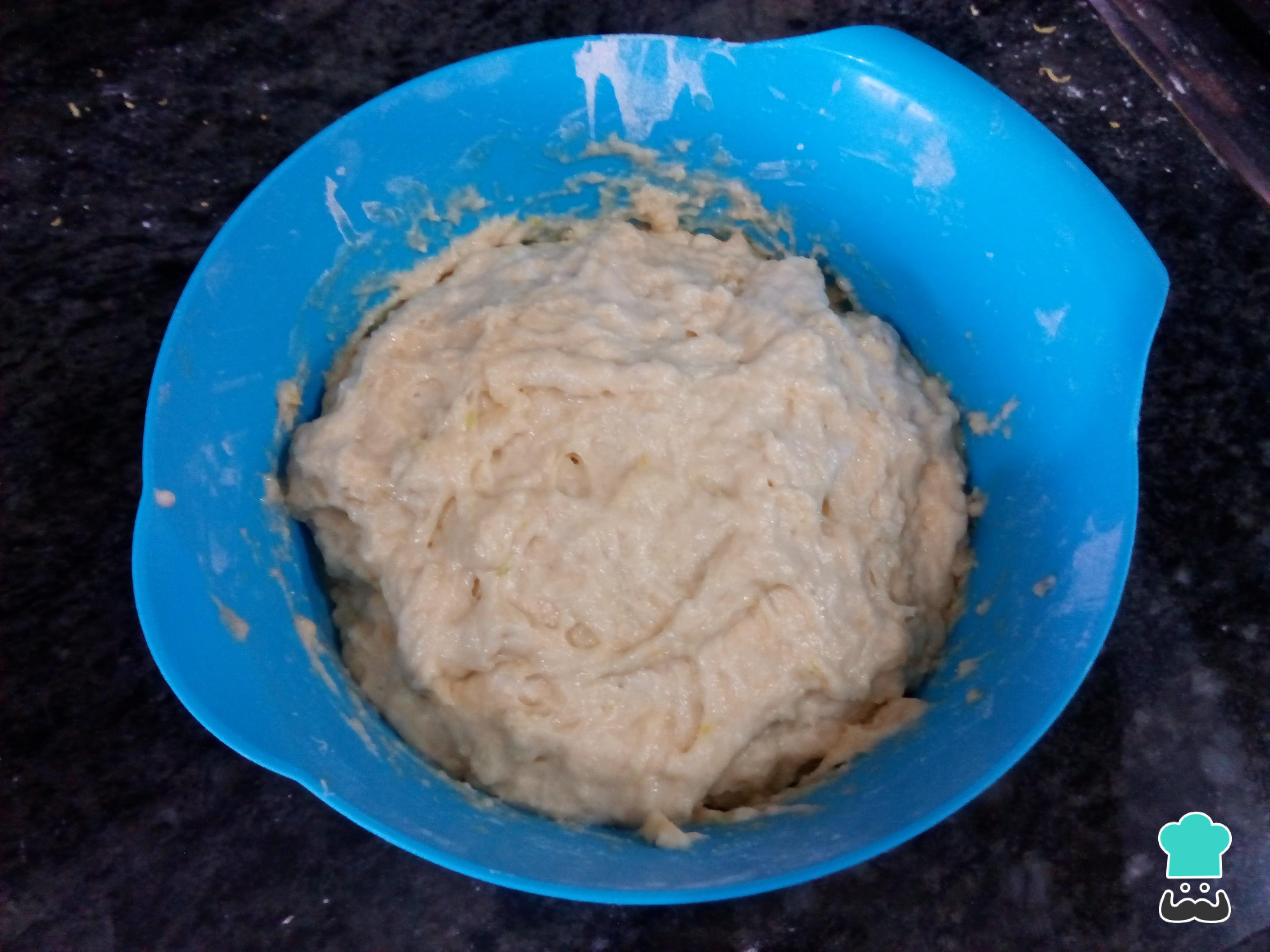 Cuando la masa madre haya fermentado, añade la leche, los huevos, el azúcar, la sal, la ralladura de medio limón y la harina tamizada. Después amasa toda la mezcla con una espátula.