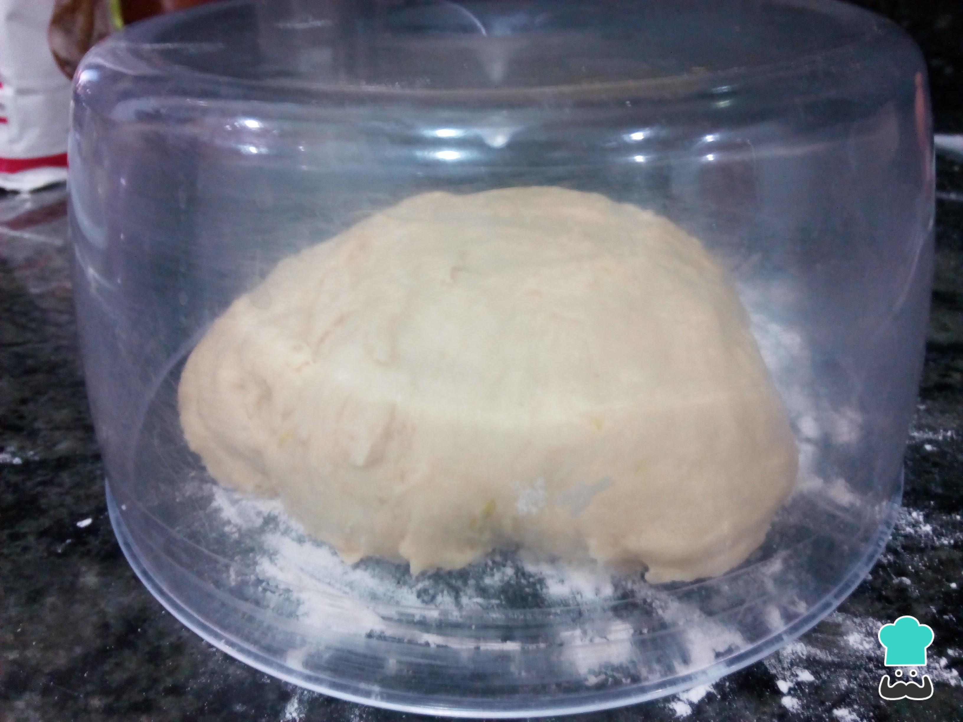 Cuando haya reposado, notarás que la masa de la coca dulce ha aumentado de volumen, está mucho más seca y consistente y se puede trabajar mejor.
