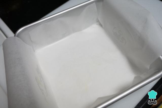 Para empezar con la receta de Coca María, primero debes encender el horno a 170 ºC con calor arriba y abajo sin ventilador. A continuación, adquiere un molde cuadrado de 25x25 y forra con papel vegetal o de horno.