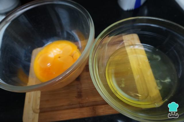 Empieza la coca María separando las claras de las yemas, añade cada una en un bol.