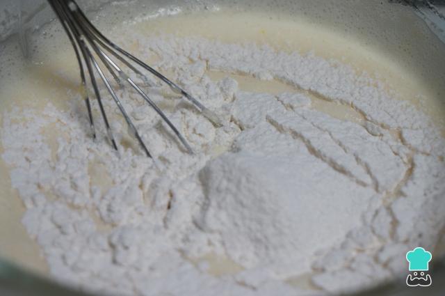 Vierte la harina y mezcla con los sobres gasificantes. A continuación, tamiza la harina y añade a la mezcla poco a poco, remueve bien.