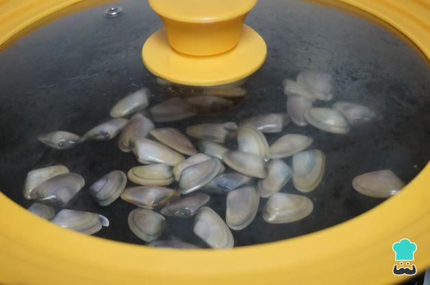 Tapa la cazuela, así hará vapor y se cocinarán las coquinas con su agua.