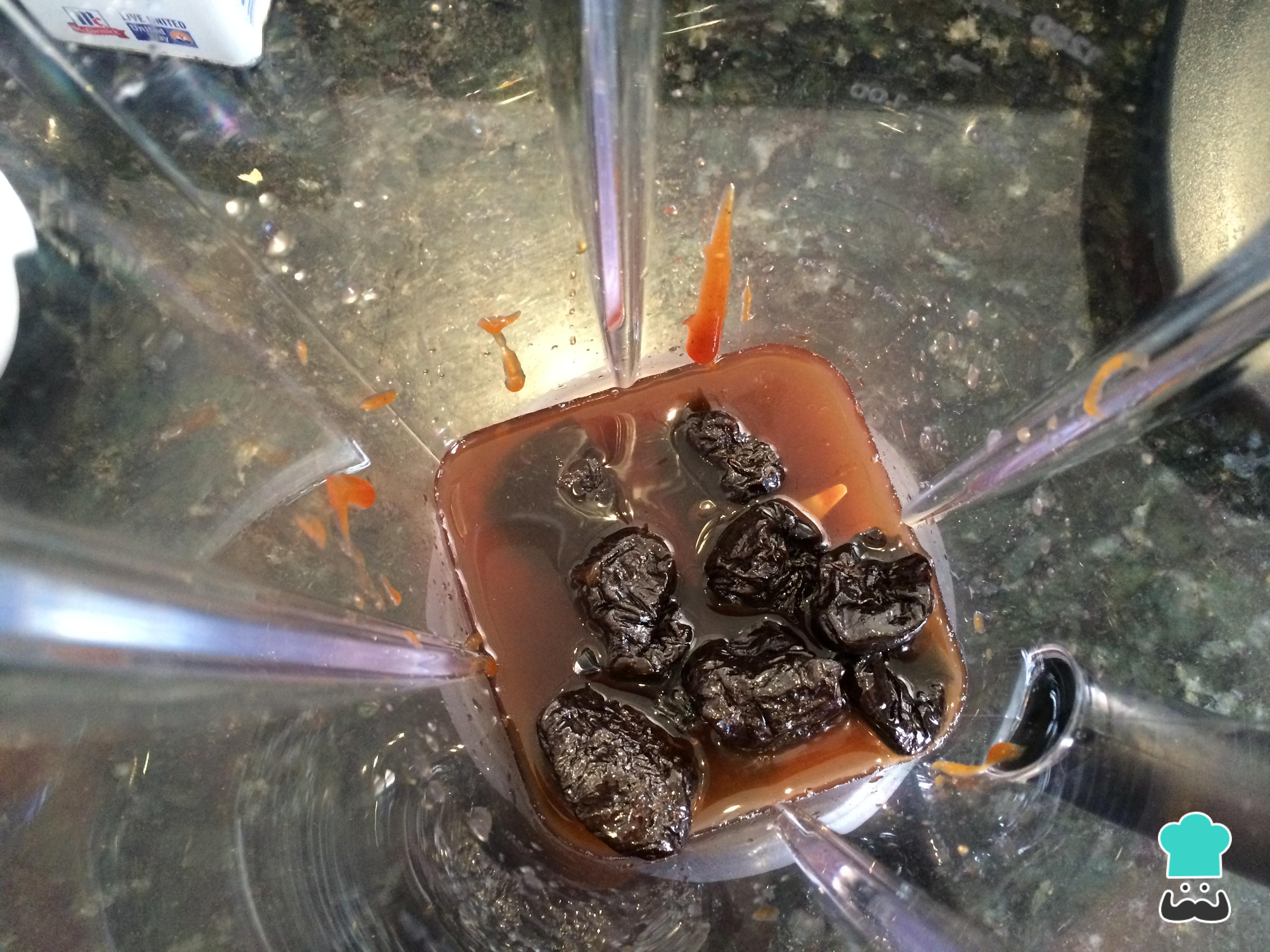 Para la salsa de ciruelas, en una licuadora agrega las ciruelas, la salsa BBQ, la salsa inglesa y un poco de agua, licua hasta obtener una mezcla homogénea.