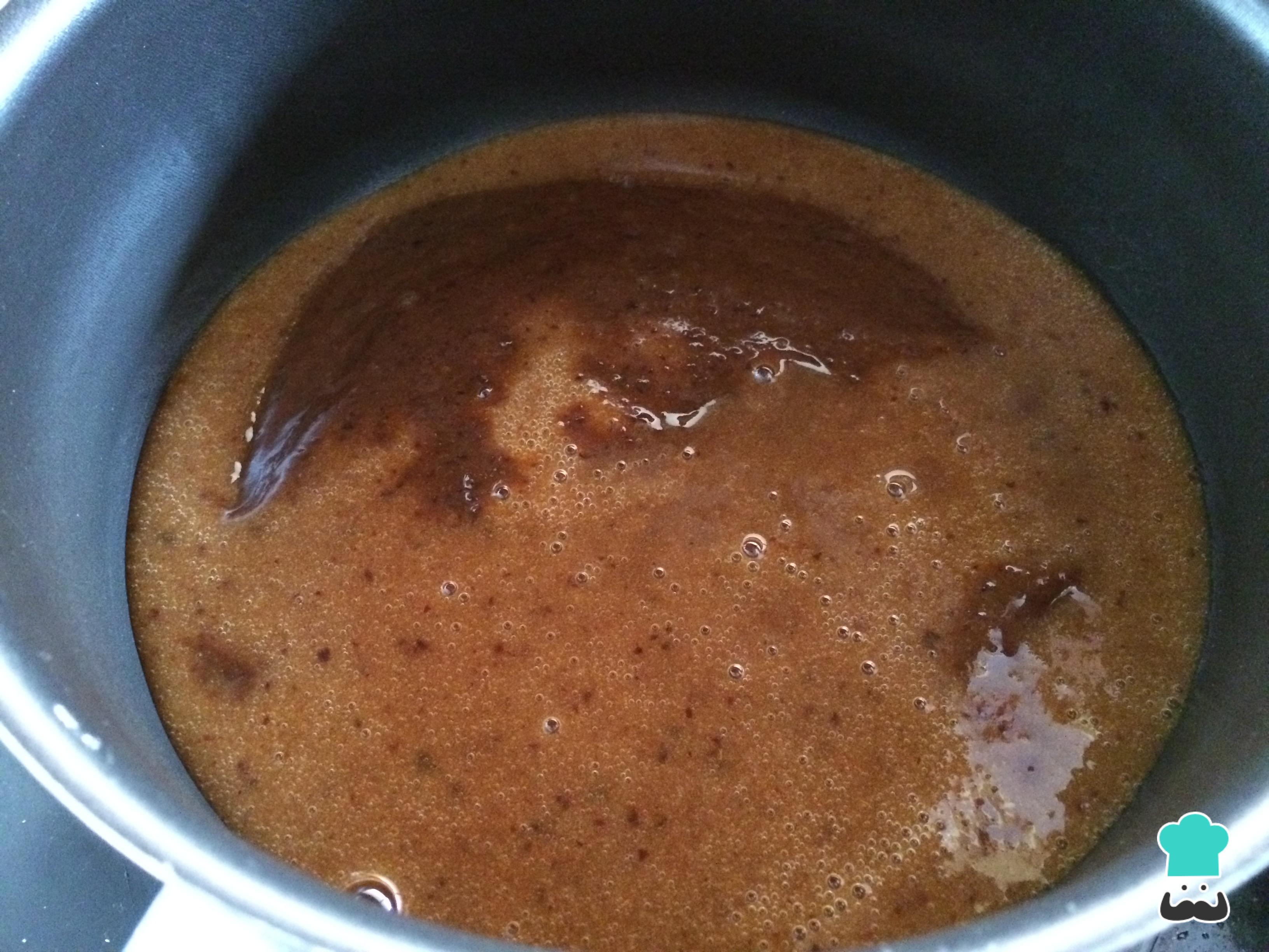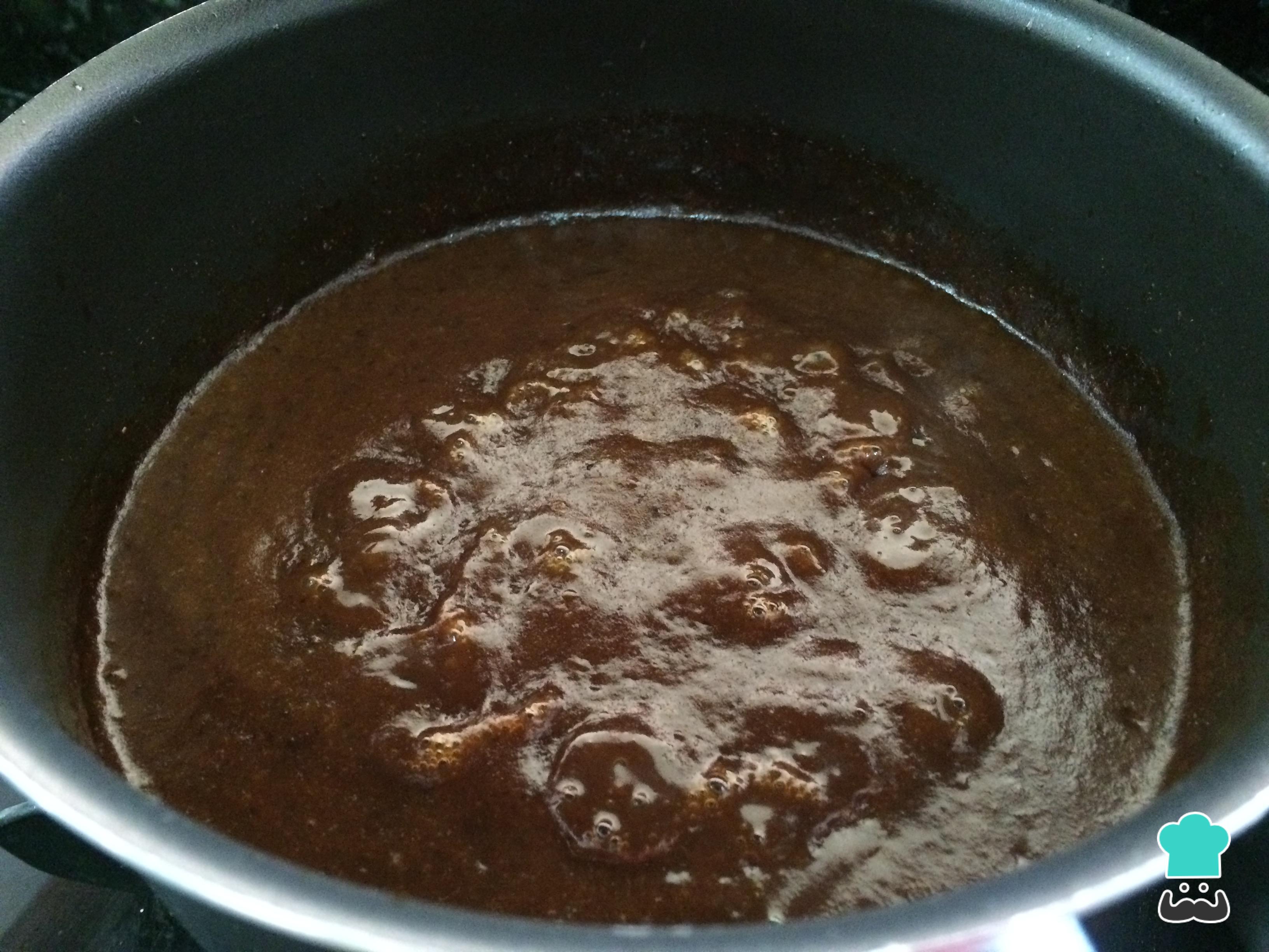 Lleva la mezcla a una olla y si sobra un poco en la licuadora, vuelve a procesar con un chorro de agua para no desperdiciar salsa.