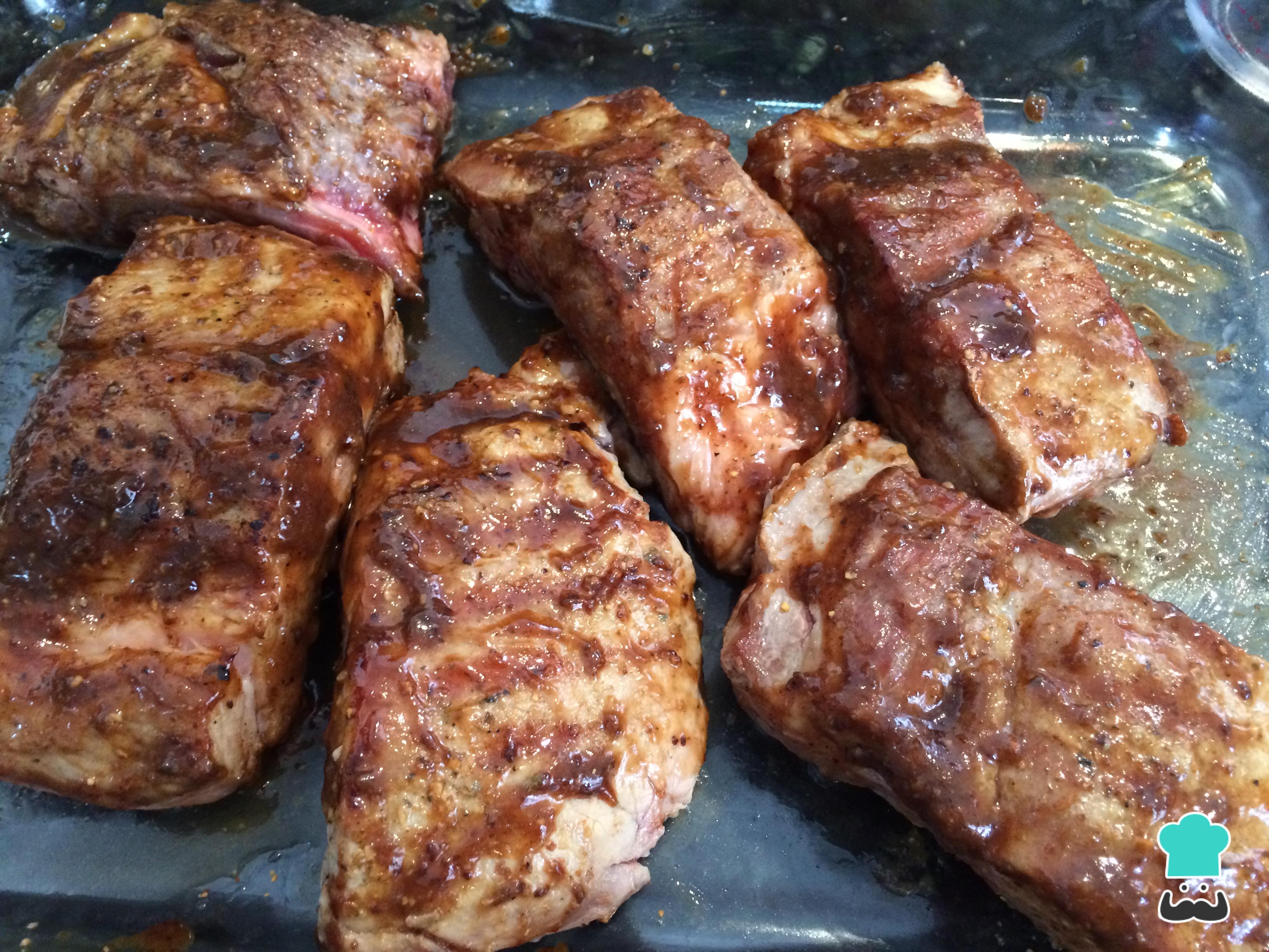 Unta las costillas con la salsa de ciruelas, llévalas a una refractaria y hornéalas a 180ºC durante 1 hora.