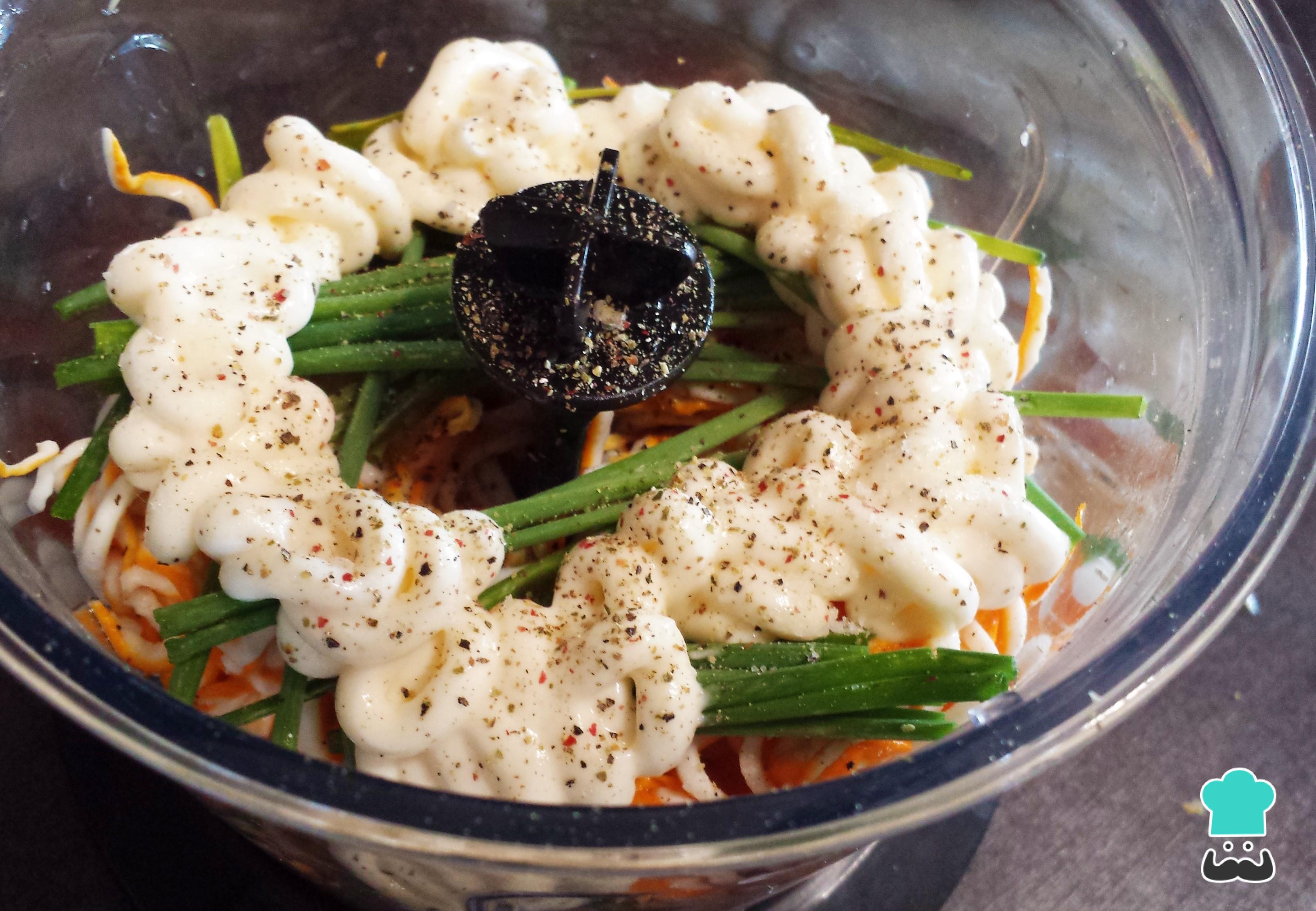 Ya para terminar añadiendo los ingredientes para hacer esta rica crema de atún para pasapalos, solo queda incorporar la mayonesa y sazonar con un poco de sal y pimienta al gusto.
