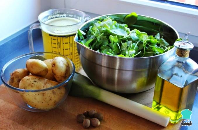Lo primero que hacemos para poder realizar esta crema de berros fácil es dejar listos todos los ingredientes.