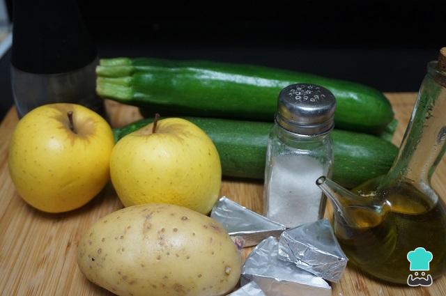 Para empezar con la receta de crema de calabacín y manzana primero prepara los ingredientes.