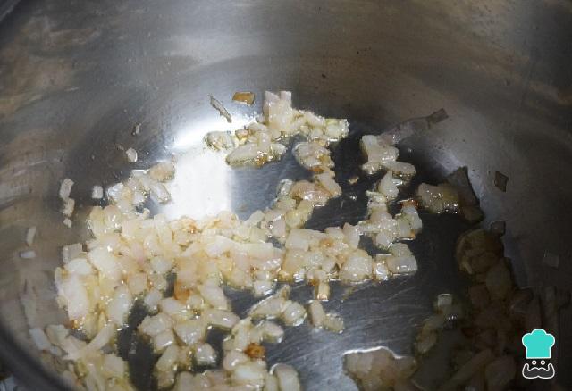Cortamos la cebolla en trozos. Ponemos una cazuela con un chorro de aceite, añadimos la cebolla y la dejamos dorar.