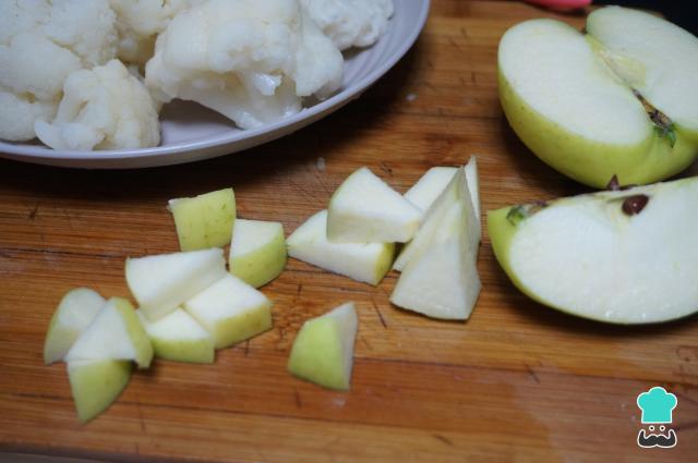 Truco: si te gusta, puedes añadir un poco de curry y mezclar para disfrutar de una rica crema de coliflor y manzana al curry.