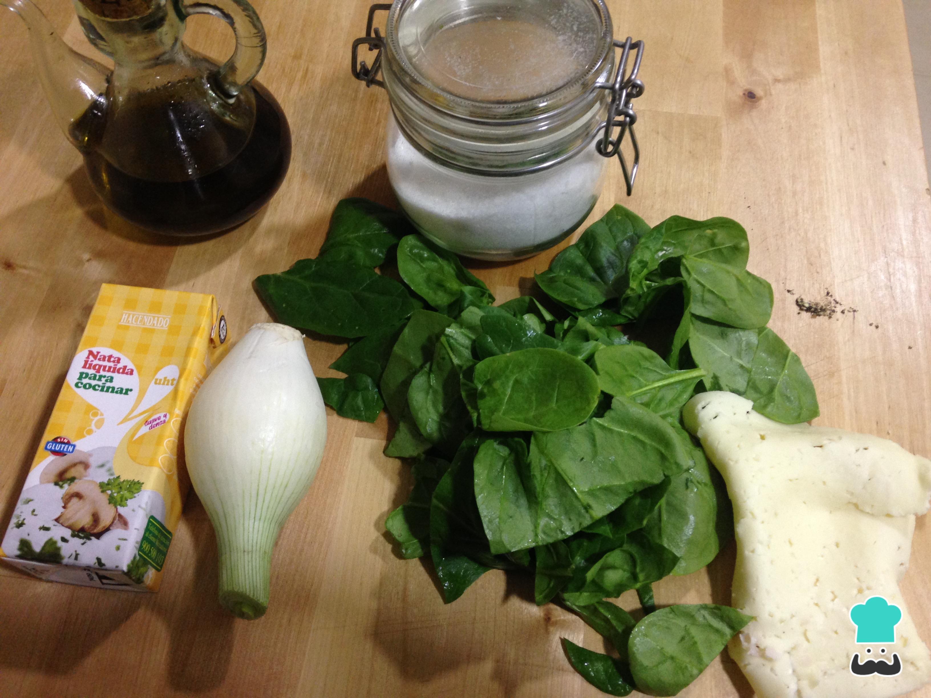 Reunimos todos los ingredientes para elaborar la crema de espinacas gratinadas.
