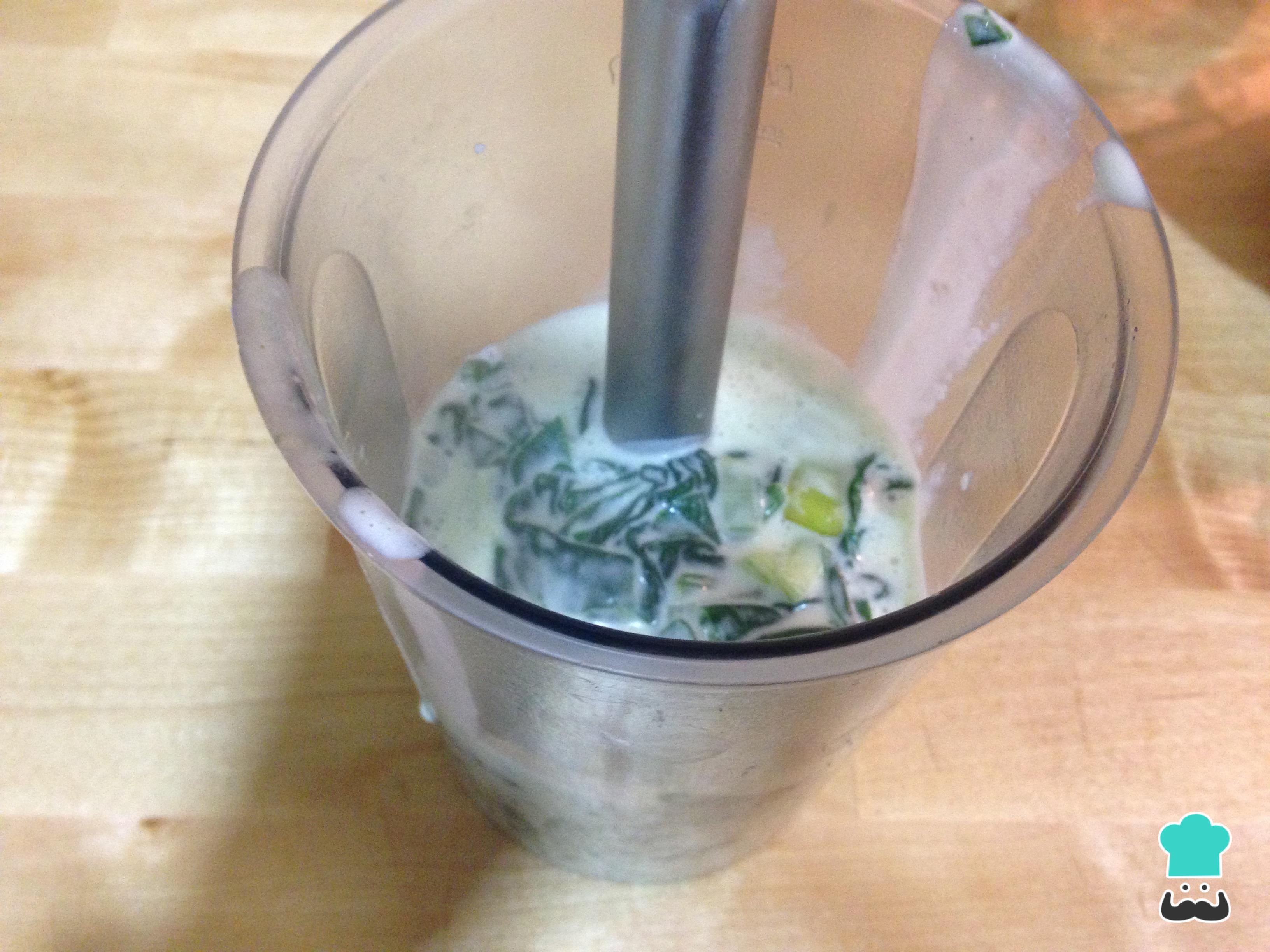 Batimos la crema de espinacas y le añadimos un poco de agua si está demasiado espesa.