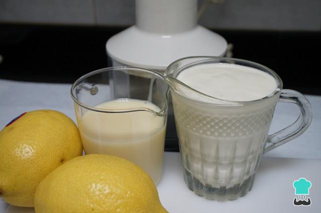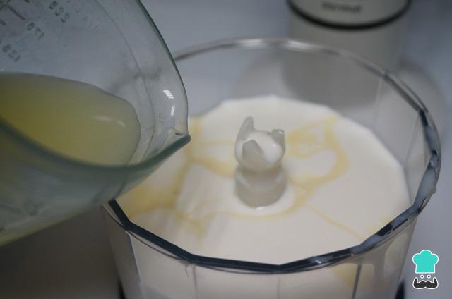 En una batidora, ponemos la nata, la leche condensada y el zumo de limón. Cabe destacar que en algunos países la nata es conocida como crema de leche.