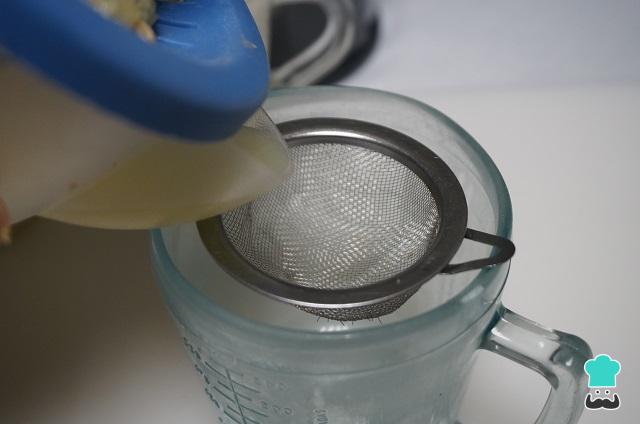Exprimimos los limones hasta obtener los 100 ml y colamos el jugo.
