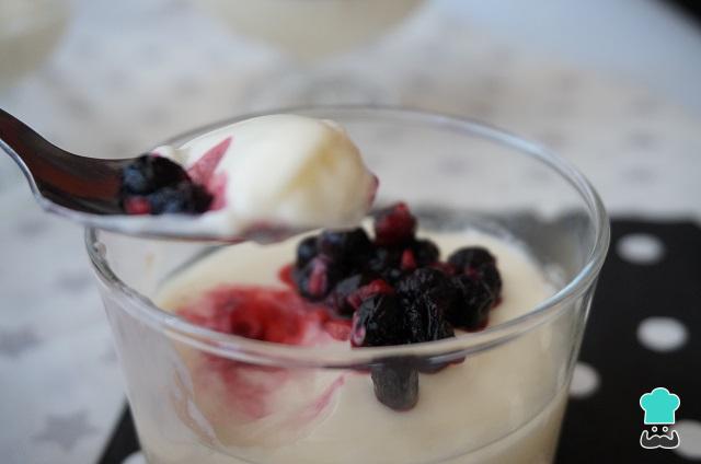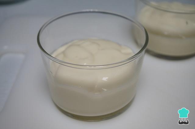 Ponemos la crema en los vasitos. Con las cantidades indicadas, salen unos 4 postres aproximadamente, aunque todo dependerá del tamaño de los recipientes.
