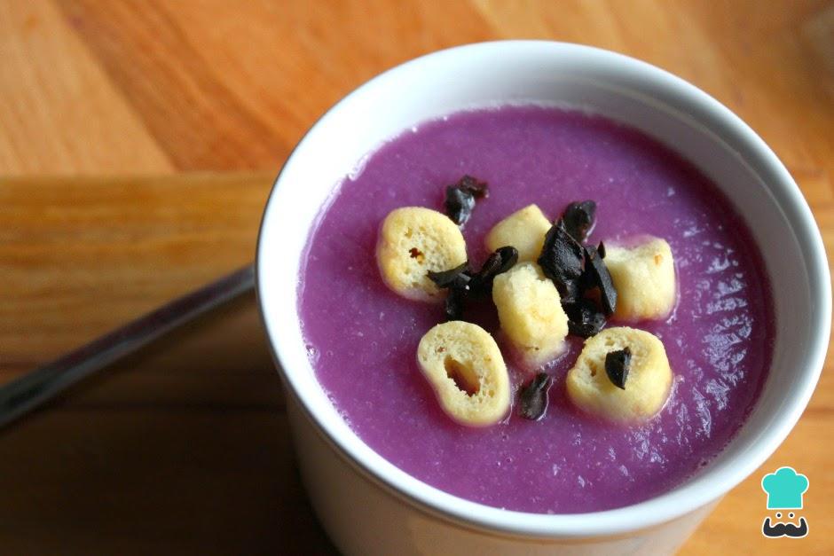 Esta estupenda sopa del col lombarda la puedes servir como entrante en una cena especial, ese color tan llamativo seguro hace que triunfes a la hora de la comida.