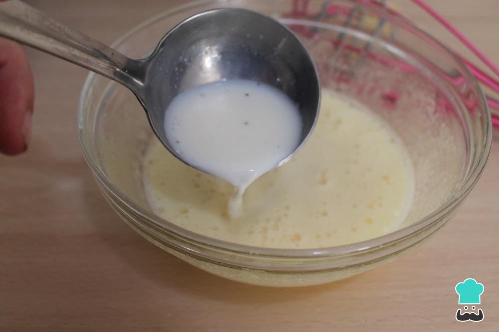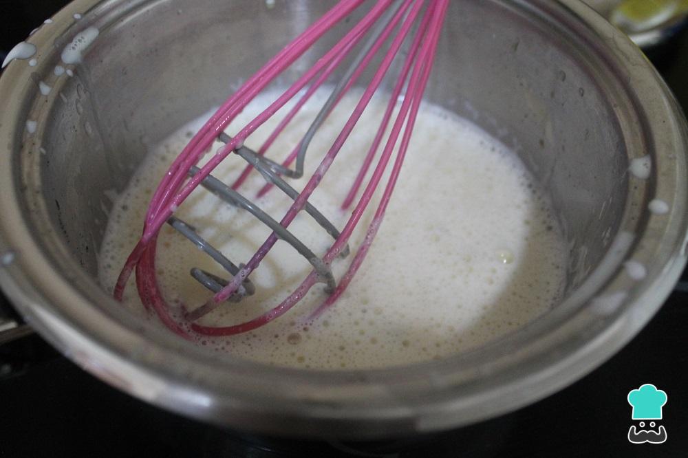 Mientras la crema se entibia, montamos la nata con ayuda de unas varillas eléctricas. La montamos bien firme. Cabe destacar que la nata es conocida, también, como crema de leche.