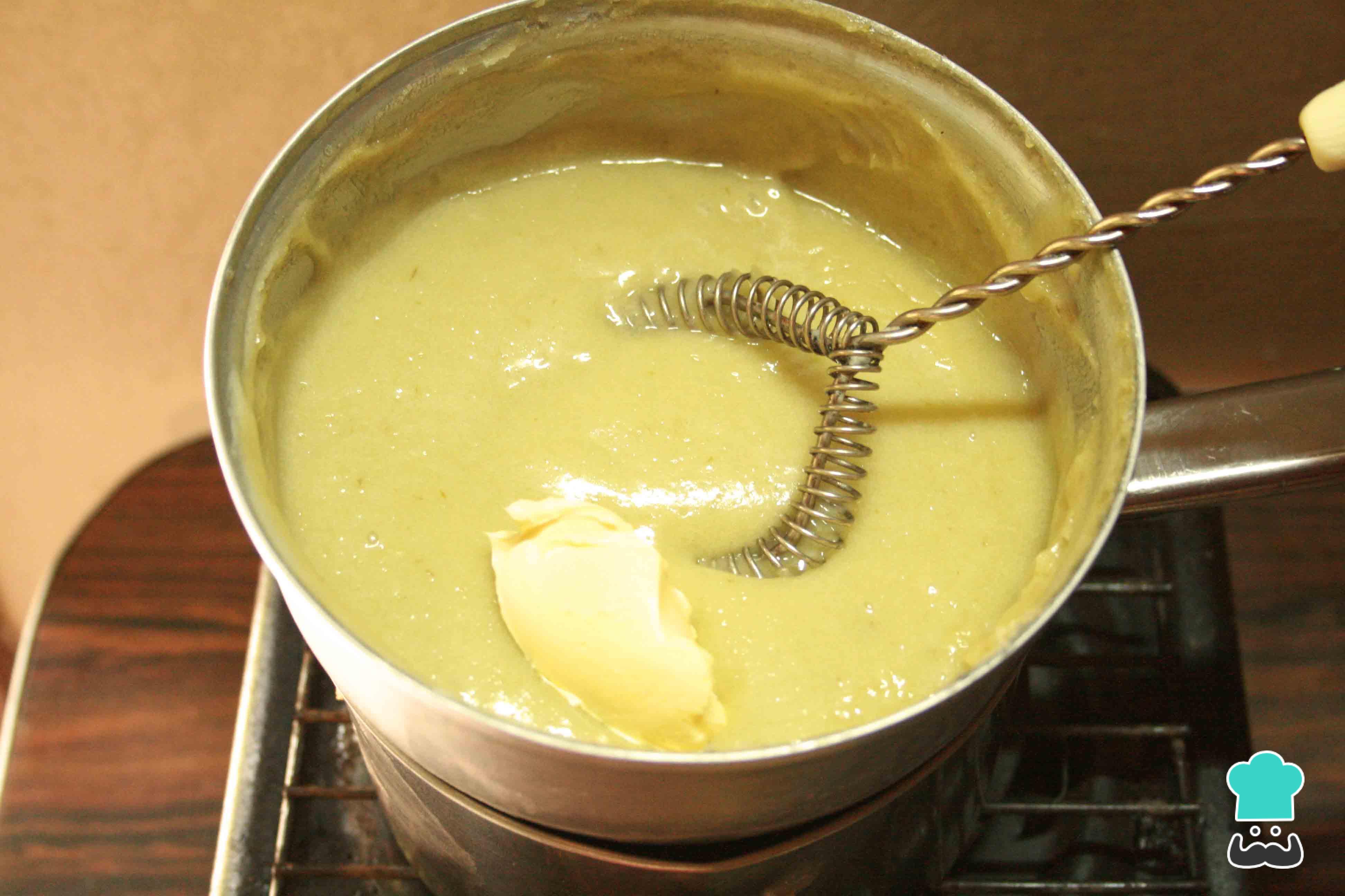 Agrega la mantequilla y remueve constantemente hasta incorporarla por completo a la mezcla. Cocina durante 5 minutos más. Al finalizar la cocción retira del fuego.