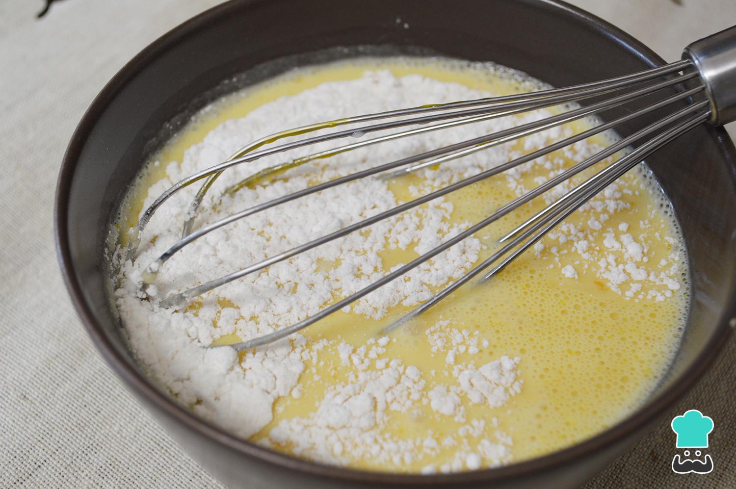 Añade poco a poco la maicena y el azúcar e integra estos ingredientes con las mismas varillas. No deben quedar grumos, de manera que bate bien.