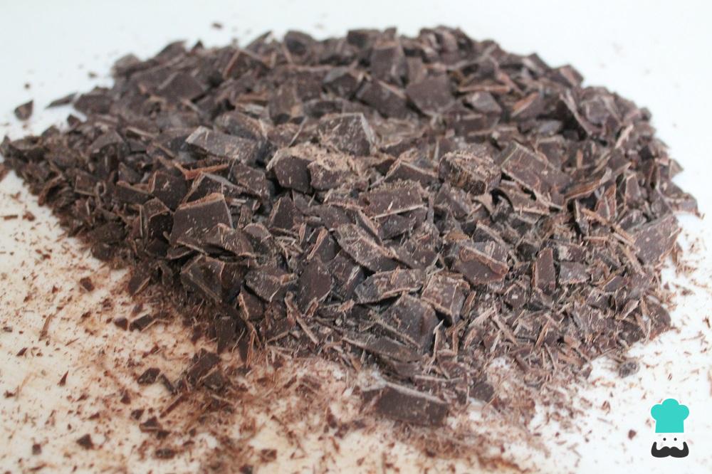 Ralla o pica el chocolate negro y reserva.