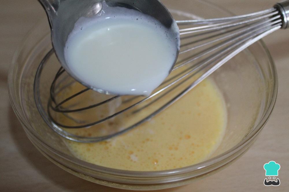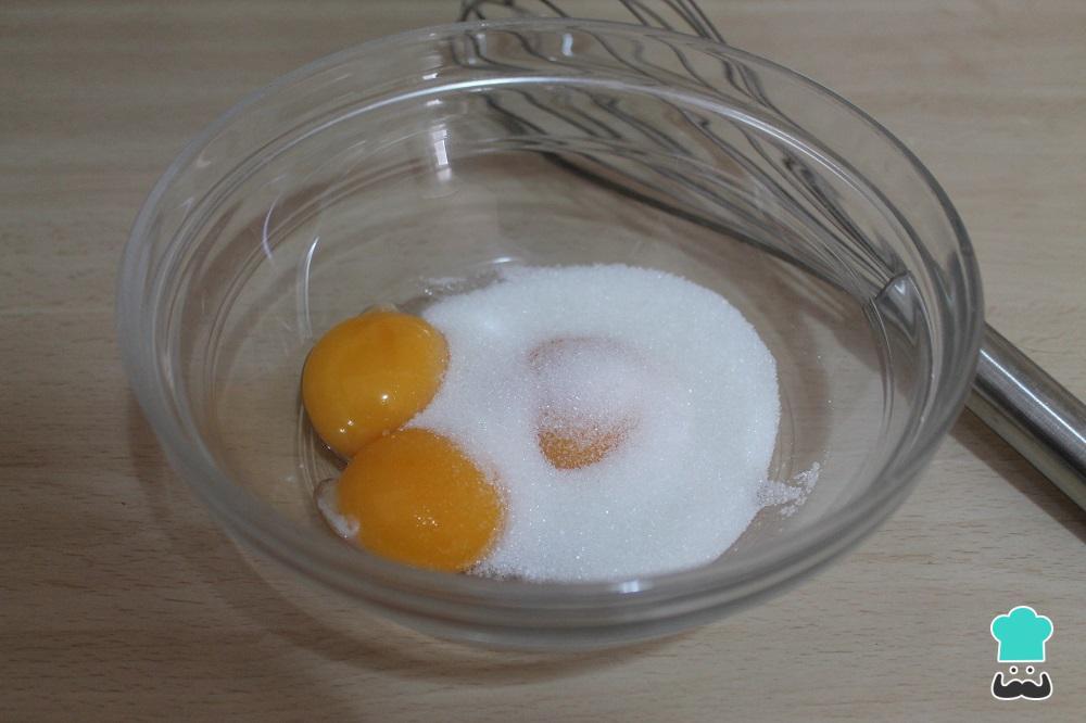 Pon en un cazo la leche y ponla a hervir. Mientras tanto, bate las yemas con el azúcar.
