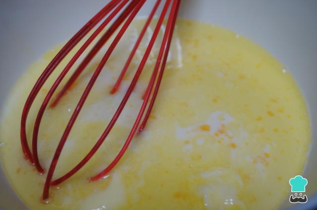 Para empezar a preparar la receta de crepes de harina de espelta primero debes añadir la leche en un bol, además de la mantequilla a temperatura ambiente y el huevo. Debes mezclar bien todos los ingredientes.