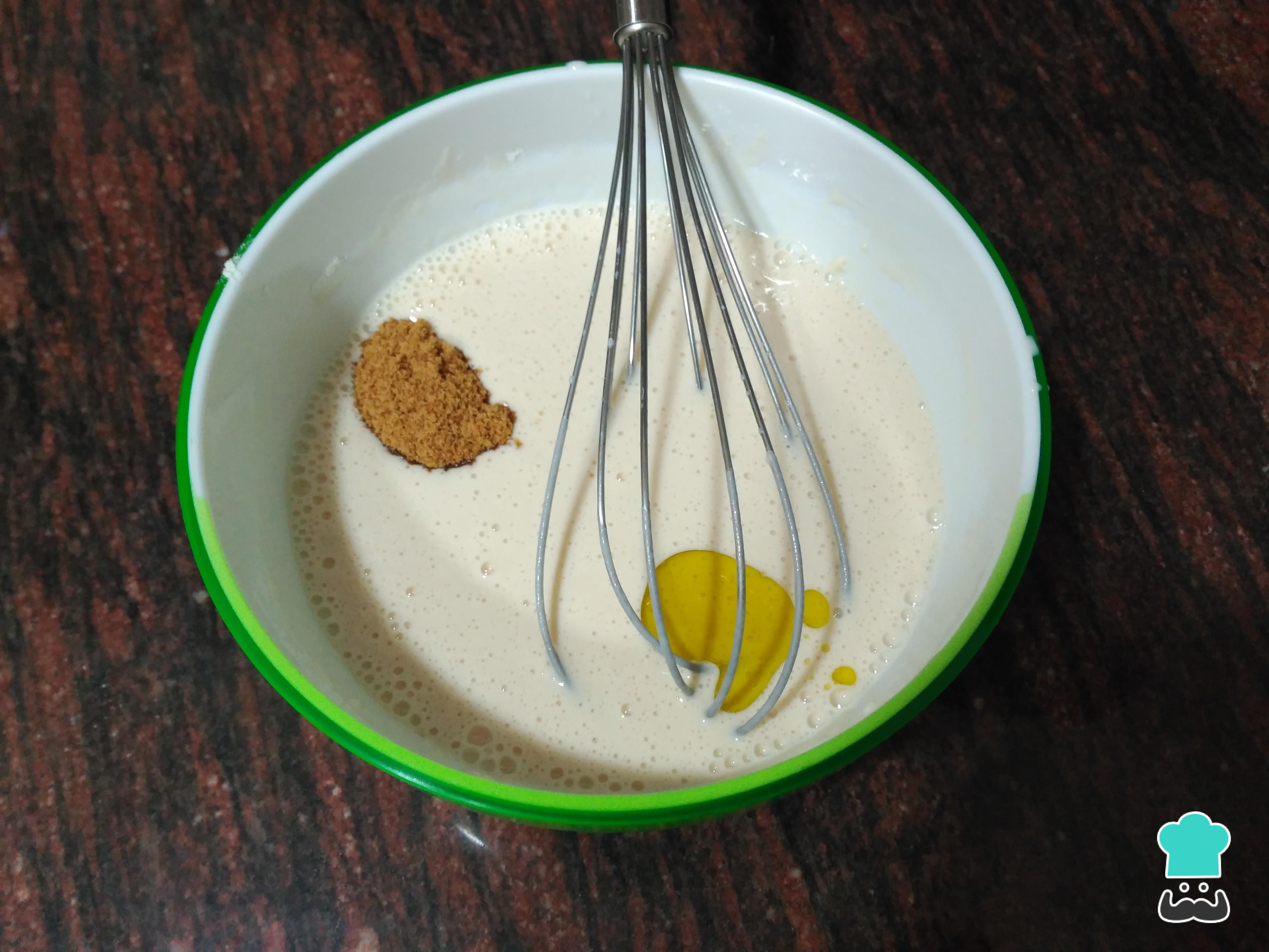 Por último incorpora el azúcar, el aceite y la esencia de vainilla, mézclalo todo bien y deja reposar la masa de las crepes sin gluten y sin lácteos en la nevera durante mínimo 1 hora para que todas las partículas de harina se hidraten uniformemente.