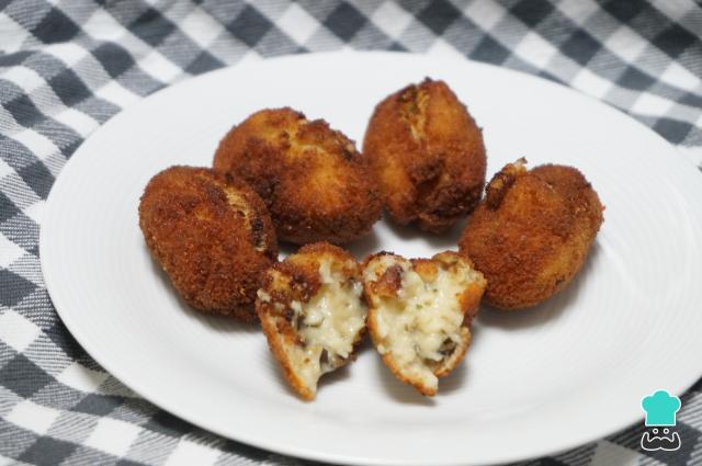 Truco: también puedes hacer las croquetas de champiñones y queso cortado cubos pequeños de algún queso que se funda e introduciéndolos dentro de la croqueta.